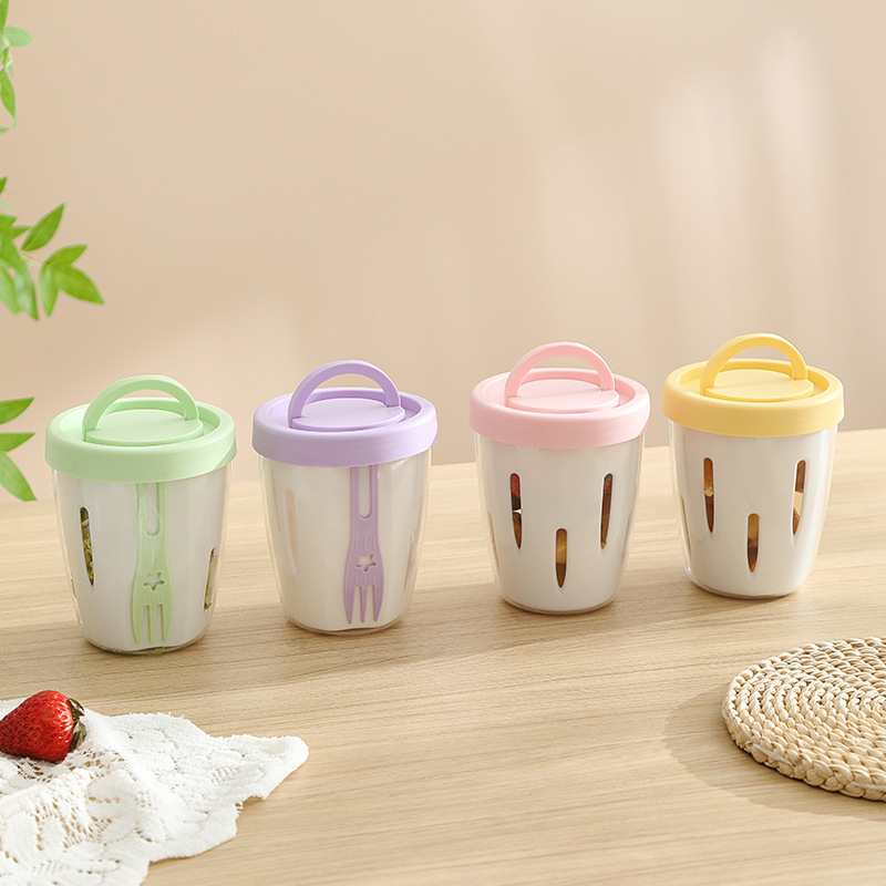 フルーツカップポータブルドレイン可能なフォーク付きインスタイル朝食サラダカップピクニック用フルーツカップオートミールカップ