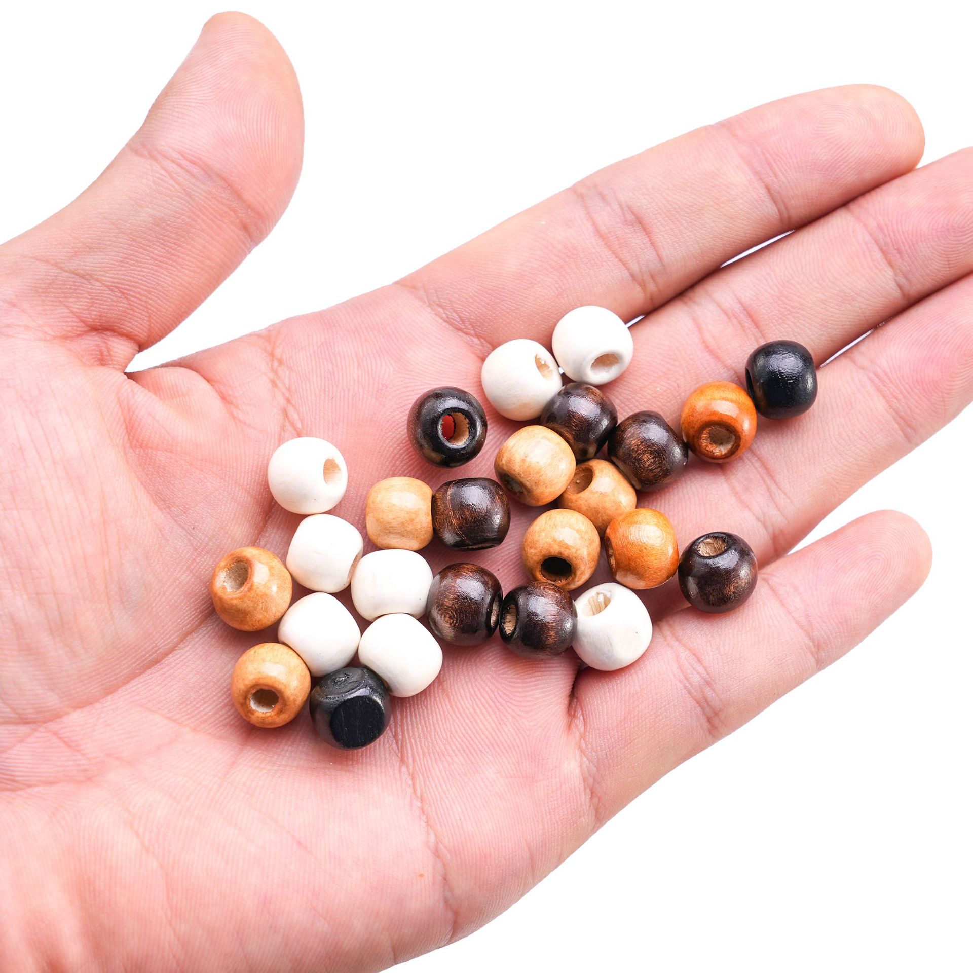 天然木ビーズ 丸玉 そろばん玉 大穴ビーズ ルースビーズ 手作りDIYアクセサリー 携帯ストラップ用アクセサリー ビーズパーツ