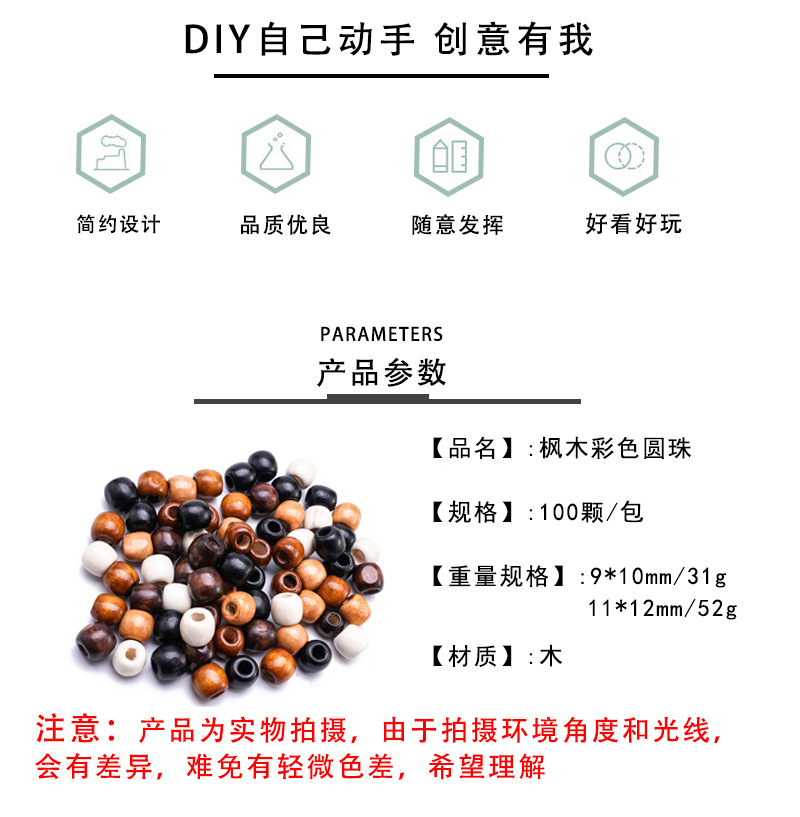 楓木散珠染色大孔実木珠diy手作りビーズ手串ネックレス補助材料束ポケットビーズ卸売り