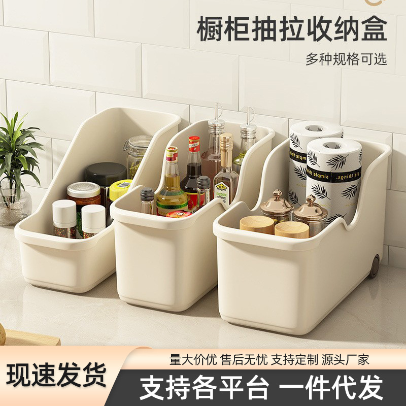 橱柜收纳筐厨房塑料置物架桌面收纳盒杂物篮调料零食整理筐储物盒