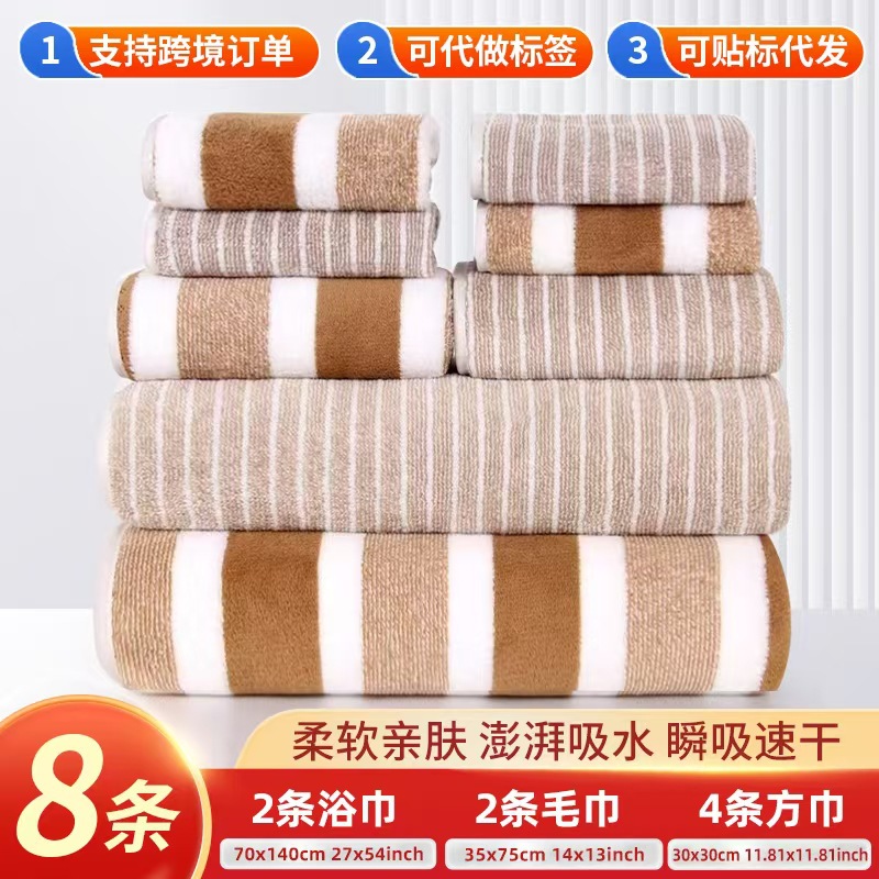 クロスボーダー8点セットタオルバスタオル厚手両面吸水成人児童家庭用洗顔タオル卸売りサンゴの毛