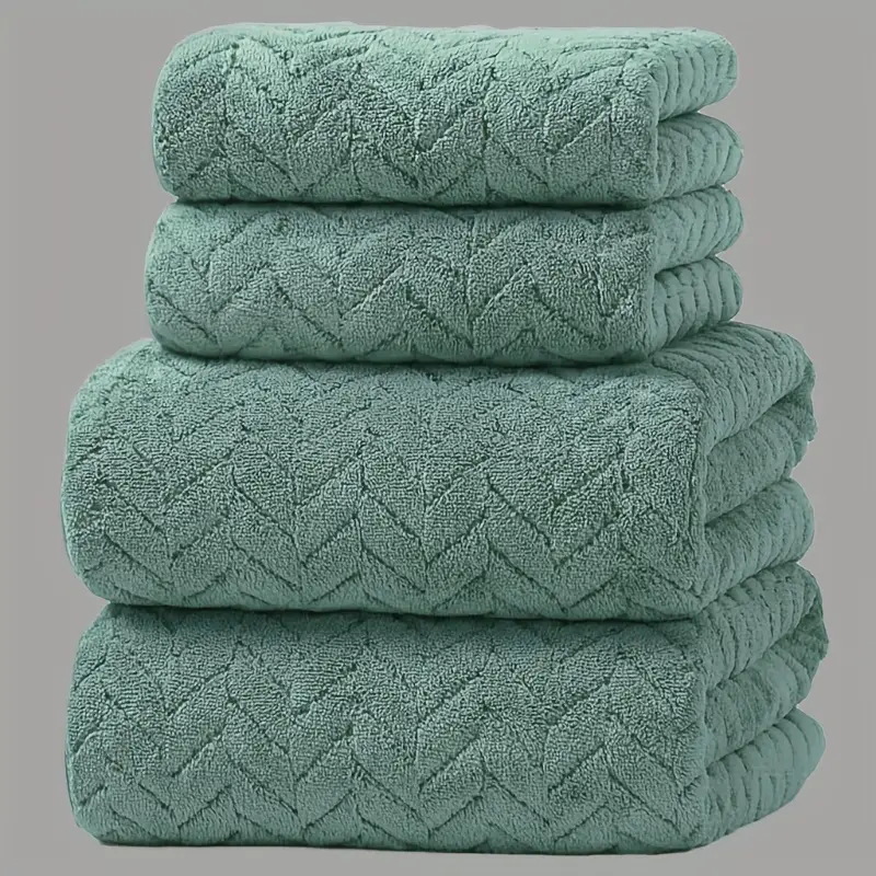跨境贴标代发一套4条珊瑚绒毛巾浴巾套装素色麦穗成人加厚吸水