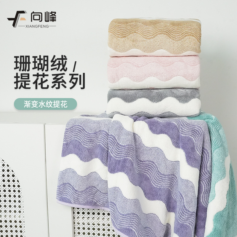 向峰新款家用珊瑚绒浴巾加大加厚浴巾跨境宽条吸水水波纹毛巾批发