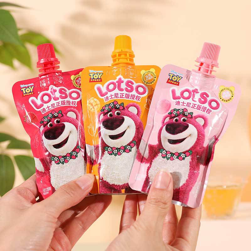 ディズニーのイチゴの熊はゼリーの白桃の味を吸うことができます。