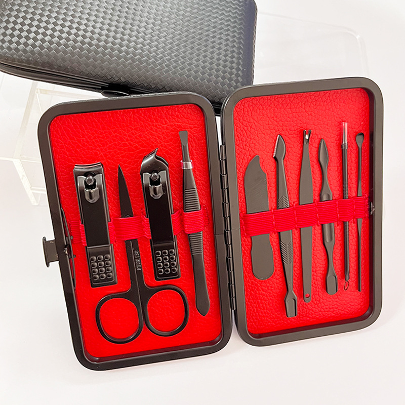 黒10点セット爪切りマニキュア工具折り袋タイプ爪切りセット