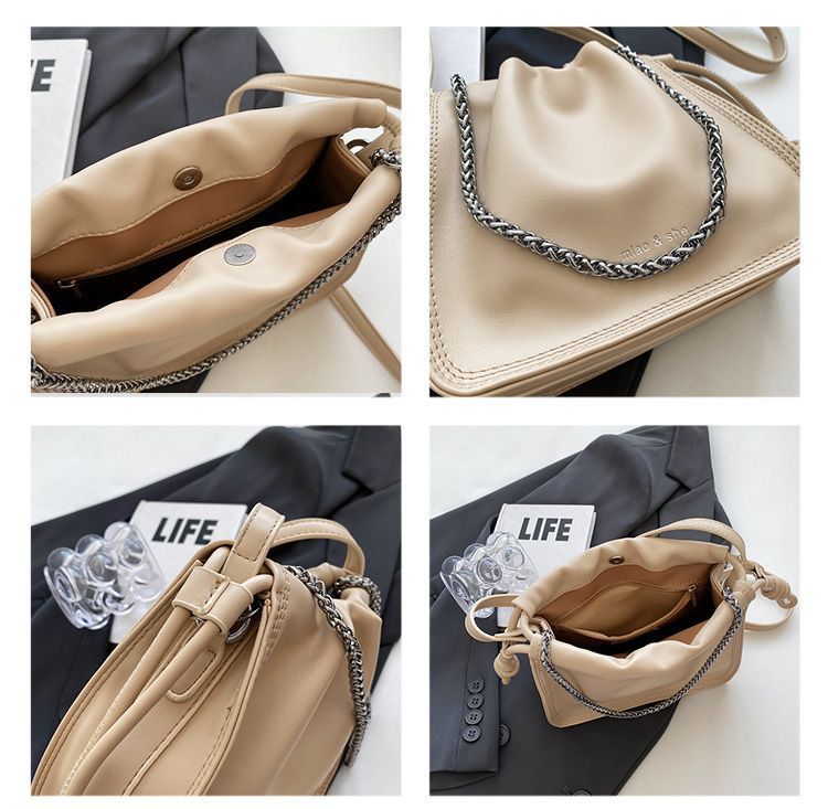 批发时尚百搭链条小包包女新款褶皱云朵小方包2026秋冬小众单肩包
