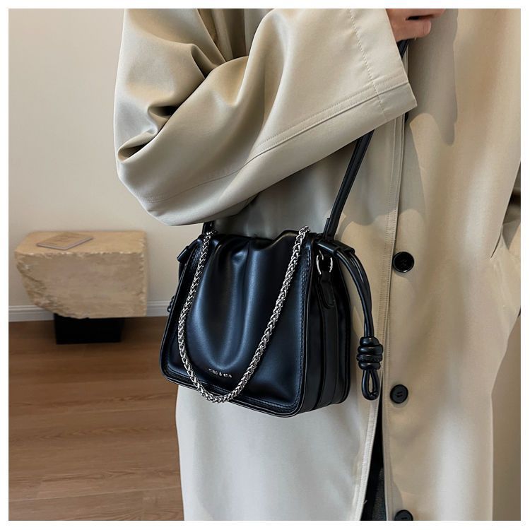 ニッチプリーツ脇の下バッグ女性の夏 2025 新しいトレンディな韓国のレトロなバケットバッグ多用途チェーンバッグクロスボディバッグ