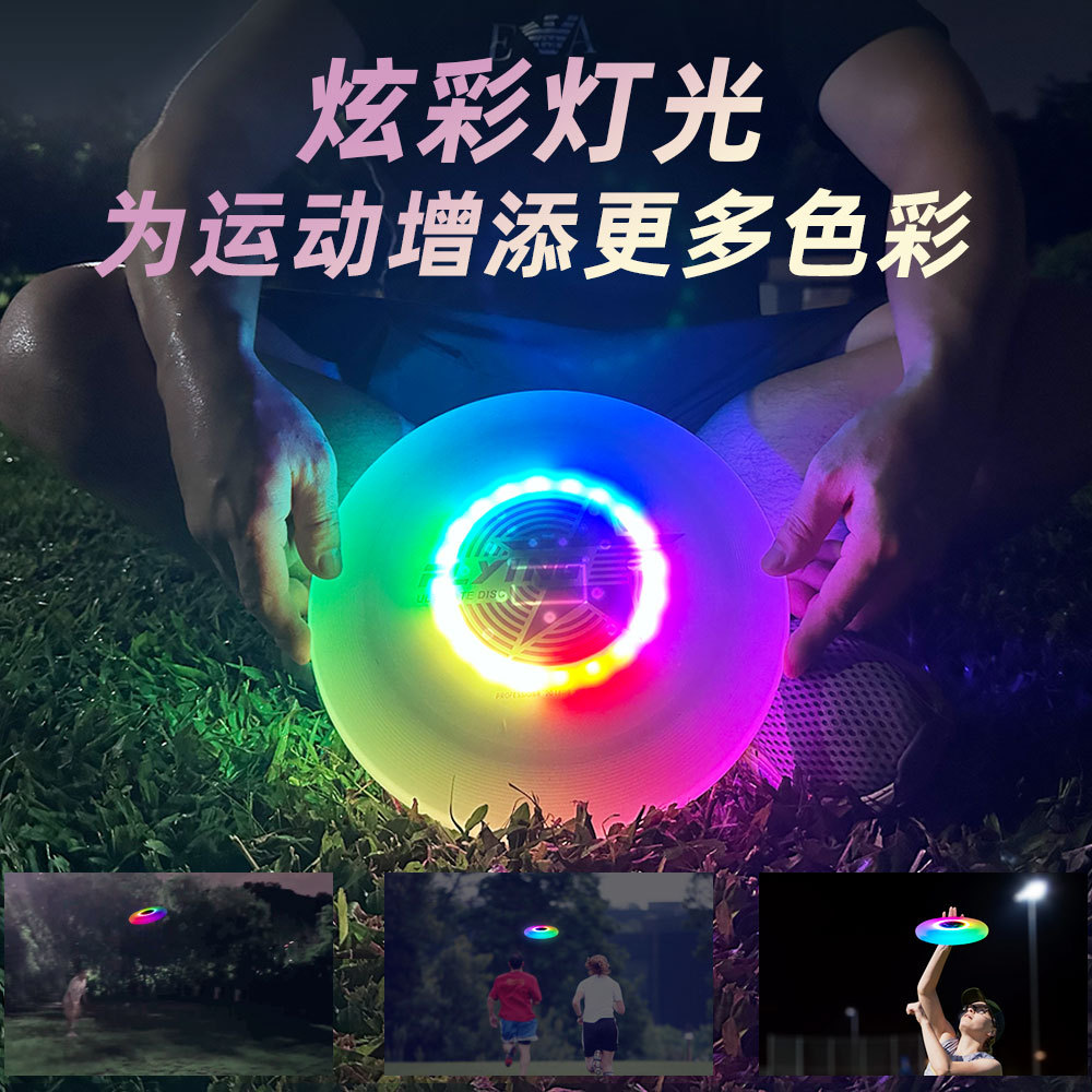 LED幻彩発光フリスビーpe材質は砂浜芝生のアウトドア極限運動のクロスボーダー発光フリスビーに適用します。