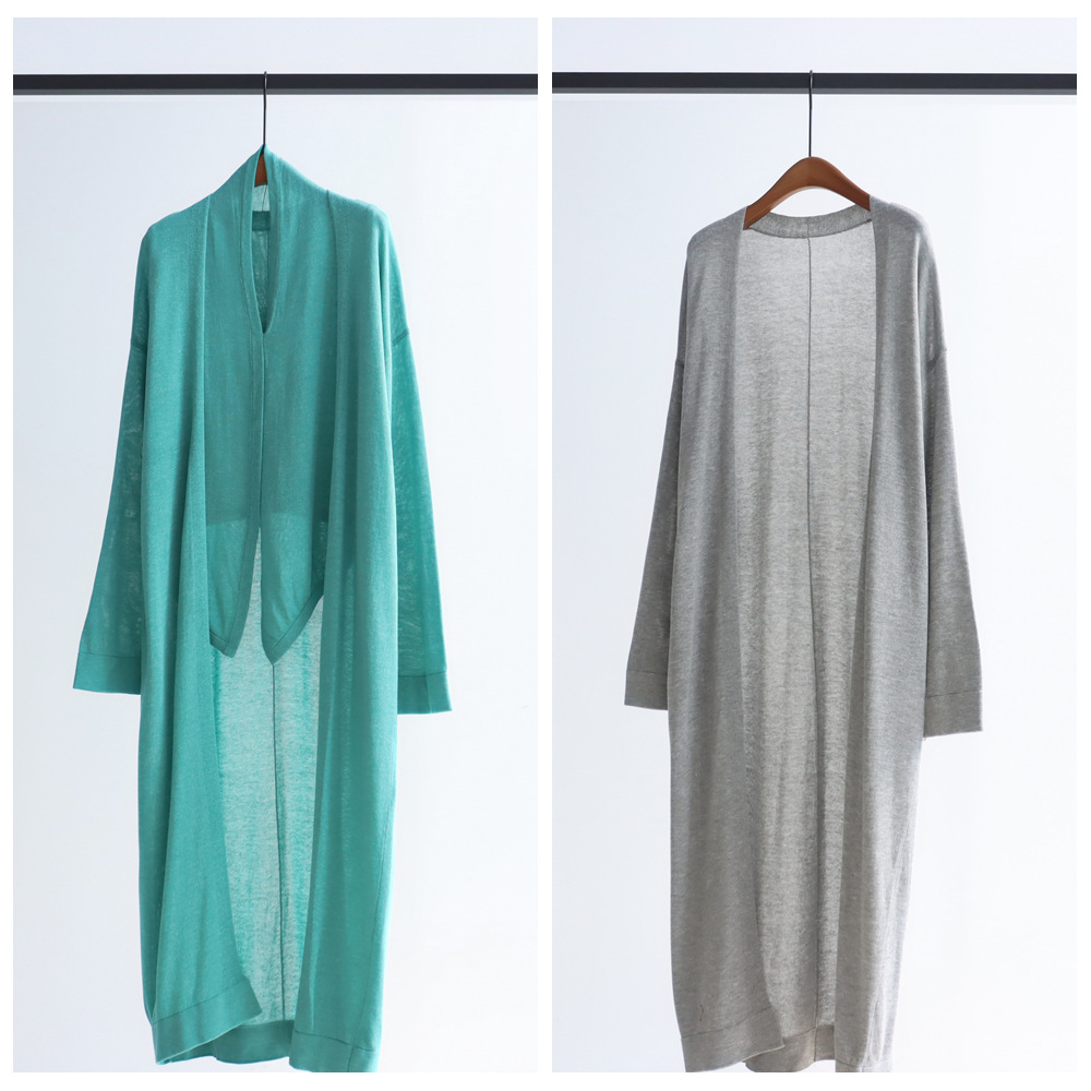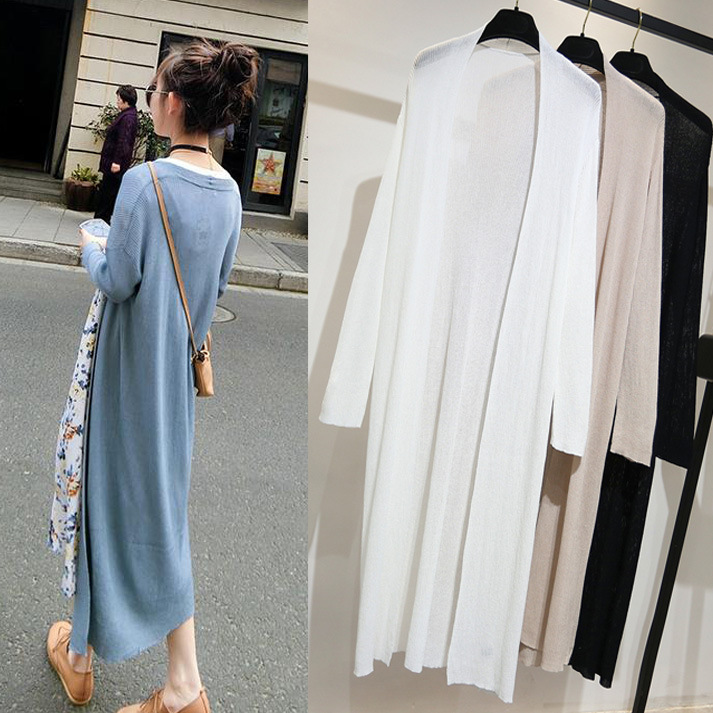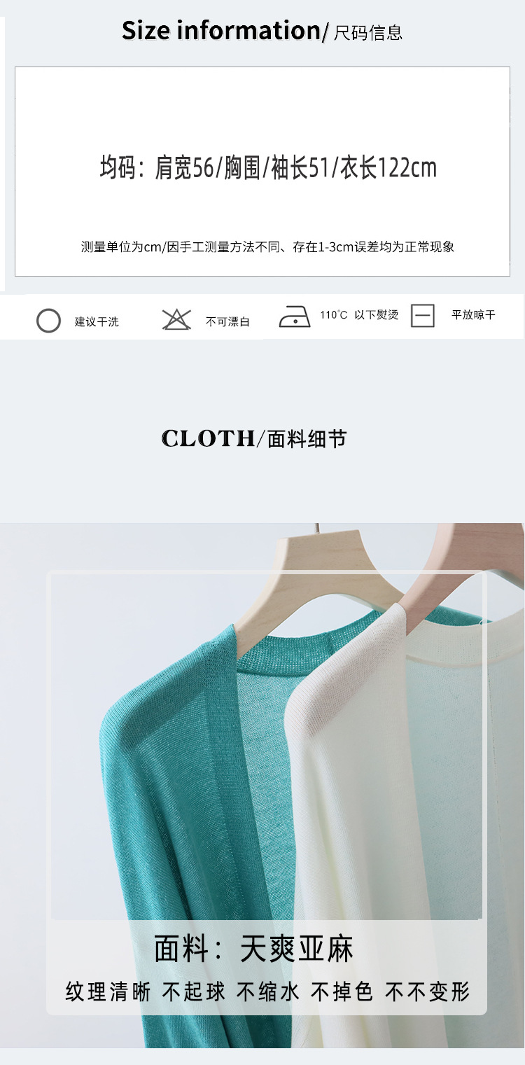 雰囲気がだるくて、長い肩掛け式のカーディガンの天糸亜麻のニットの外は流行の薄いタイプの日焼け止めのエアコンの女性を掛けます。