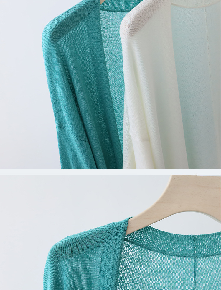 一粒はコウモリの袖の天糸のブラウスのニットのカーディガンの女性の夏の薄いタイプの透かし彫りの日よけの肩のサスペンダーの外で白いです。
