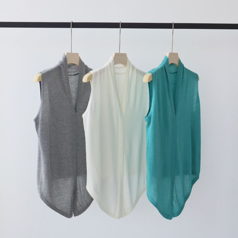 かすかに透き通って怠惰な風の天爽の亜麻の流行の肩の編みの馬甲の長いカーディガンの春夏の薄い袖なしのベストの上着