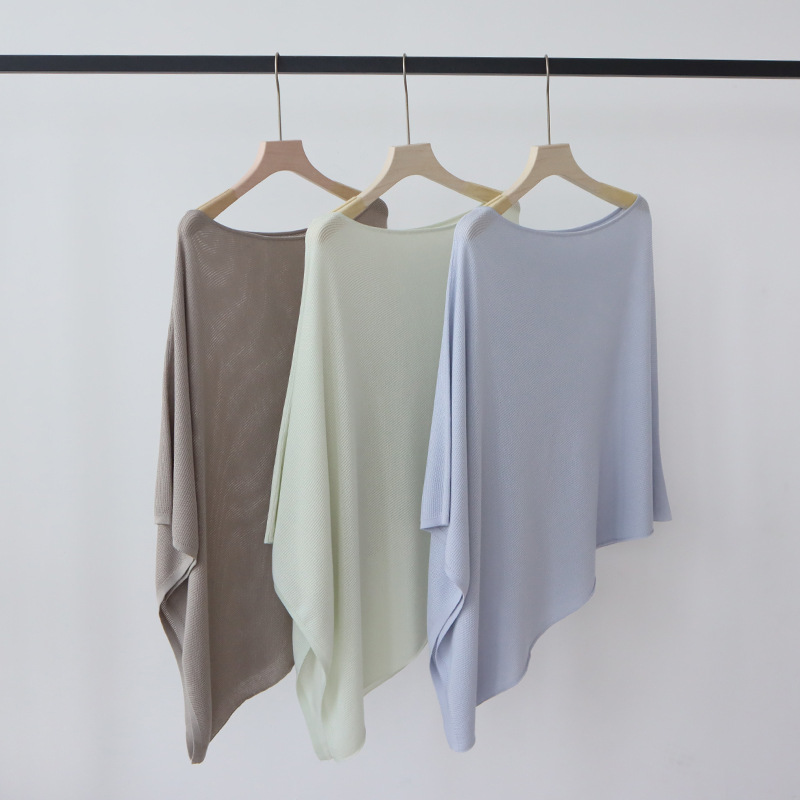 高級リヨセルテンセルセーターショール、レイジーワンピースワンラインカラーサンプロテクションブラウス、女性用アウタートップ