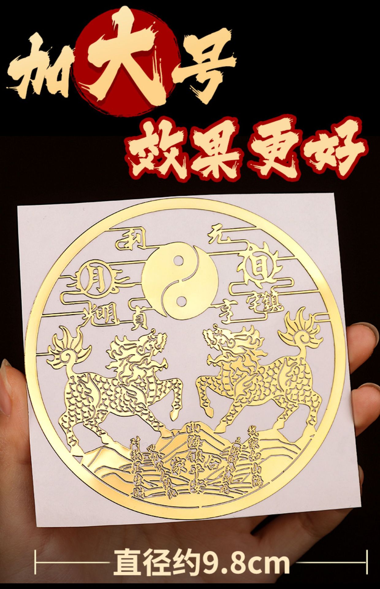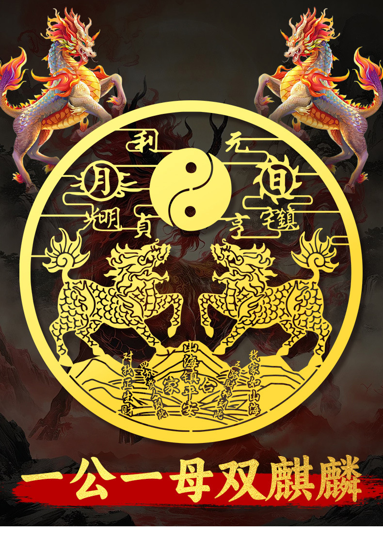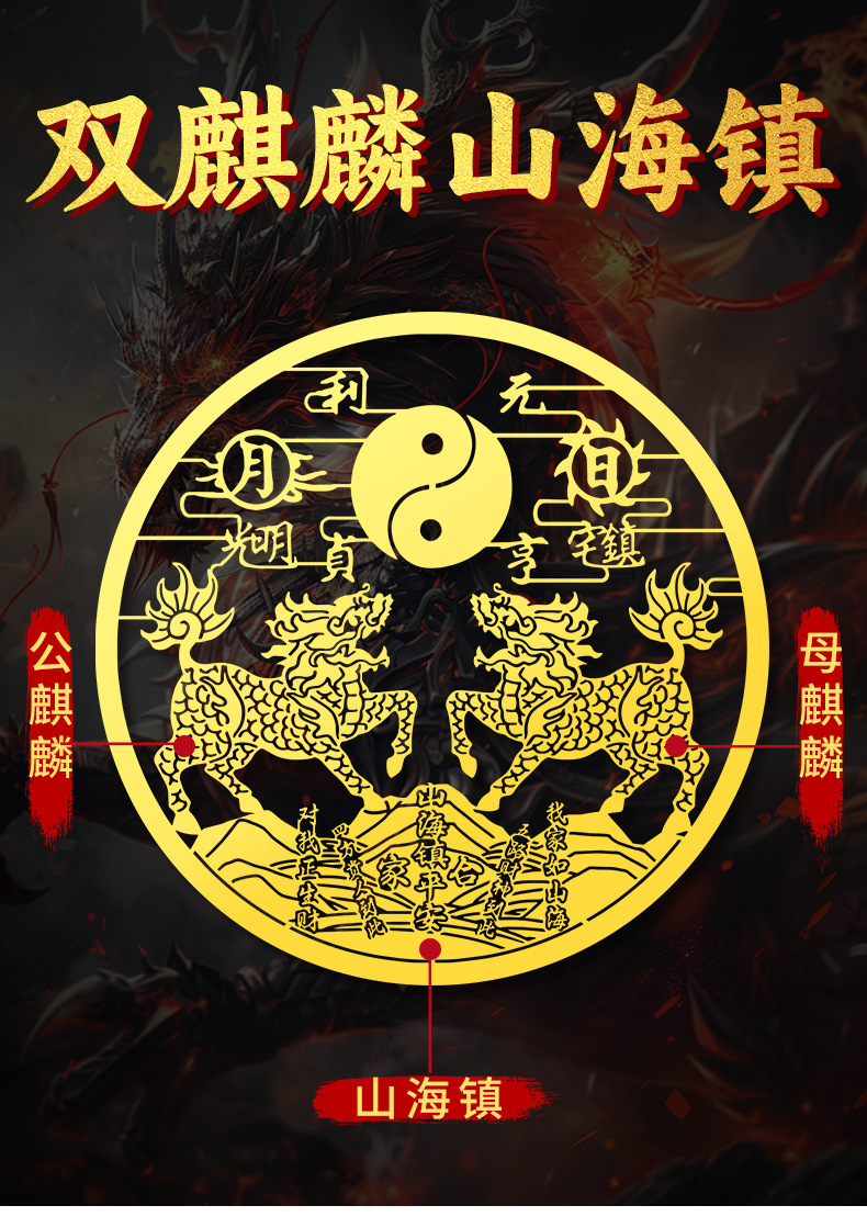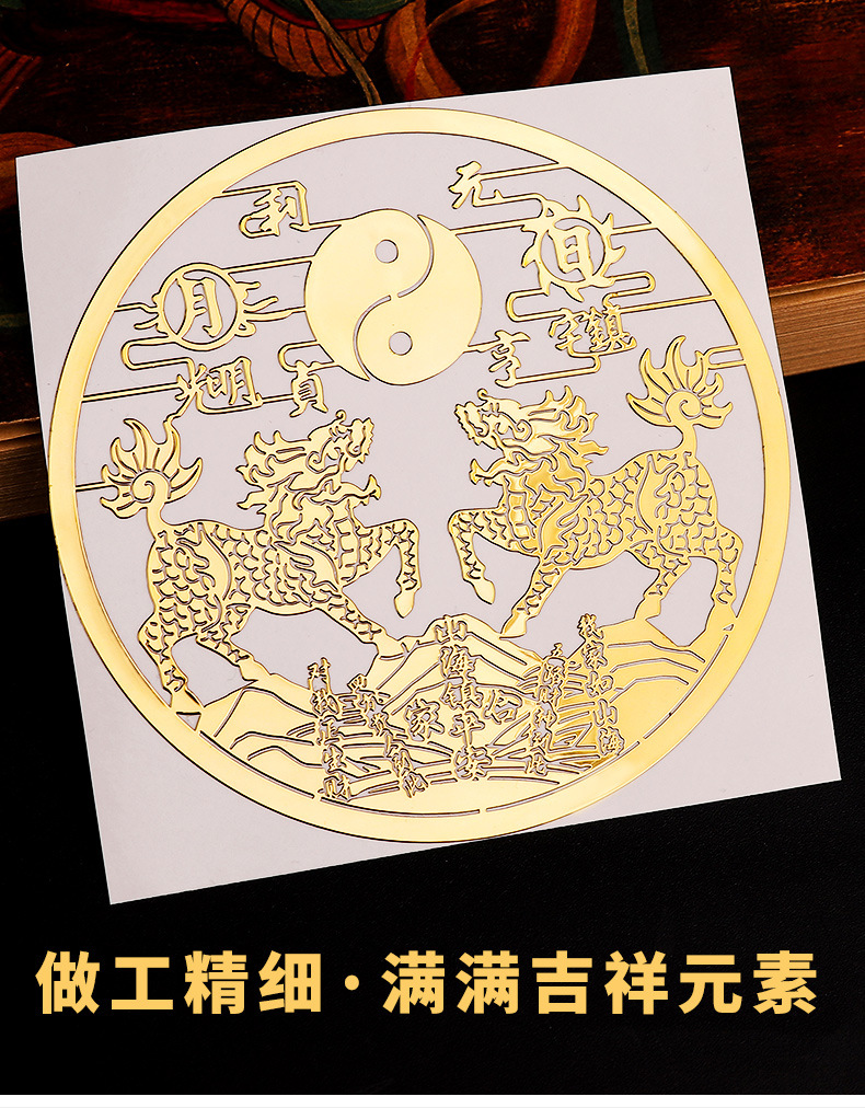 双麒麟山海镇金属贴纸五帝钱室外窗户大门八卦镜挂件摆件门贴批发