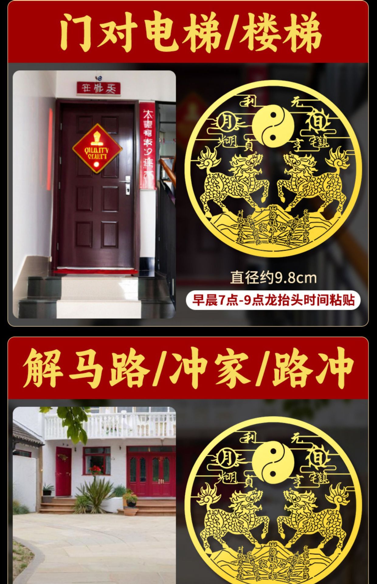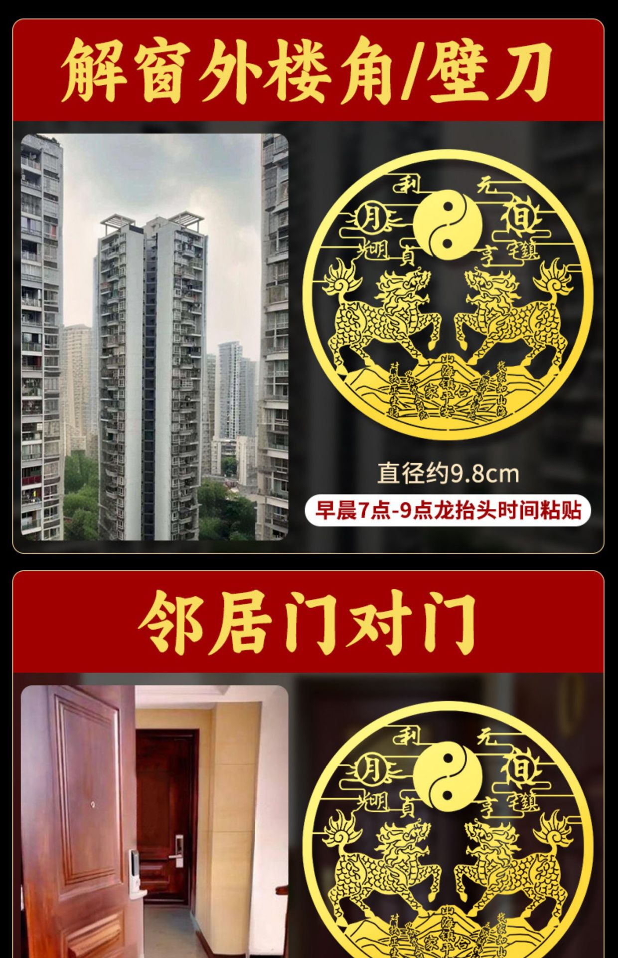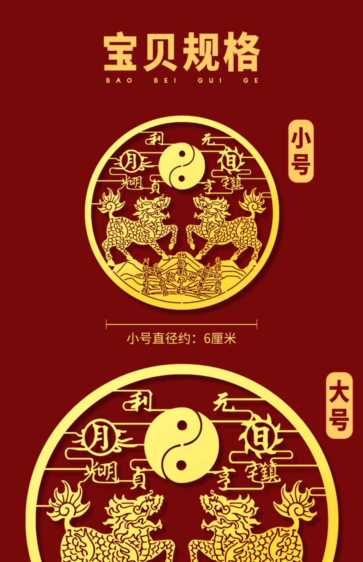 双麒麟山海镇金属贴纸五帝钱室外窗户大门八卦镜挂件摆件门贴批发