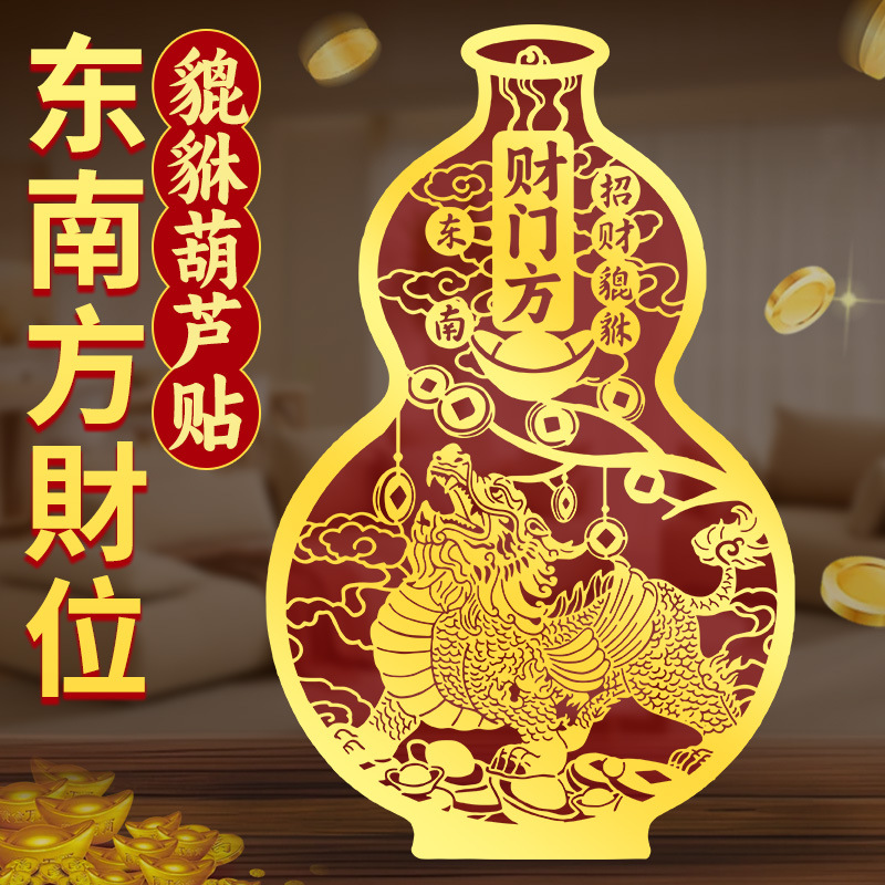 招财貔貅贴纸客厅东南财位摆件家居聚财金属贴办公室店铺贴画批发