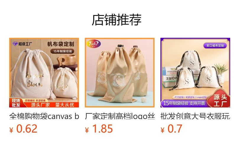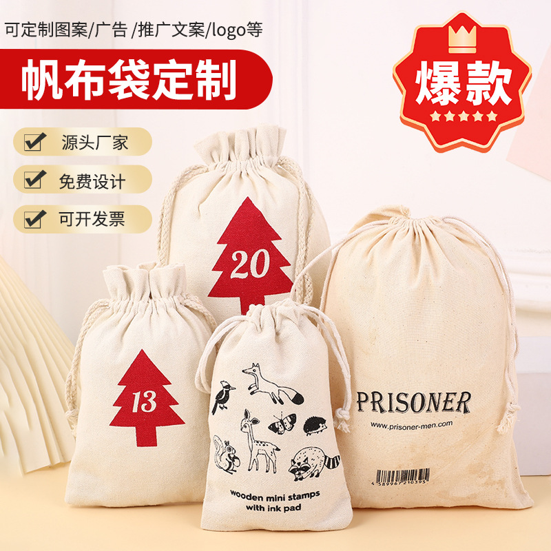 メーカー卸売り綿帆布束ポケット引き紐引き袋プレゼント収納ロゴ模様文字