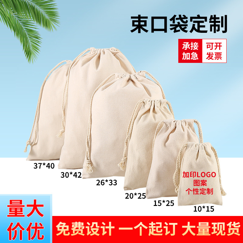 直供引き縄袋磨毛綿麻綿胚袋アクセサリー包装束口純綿布収納袋卸売り
