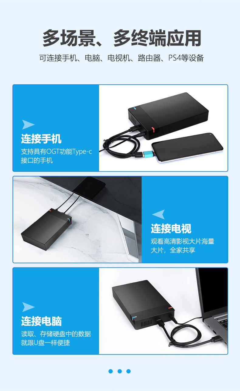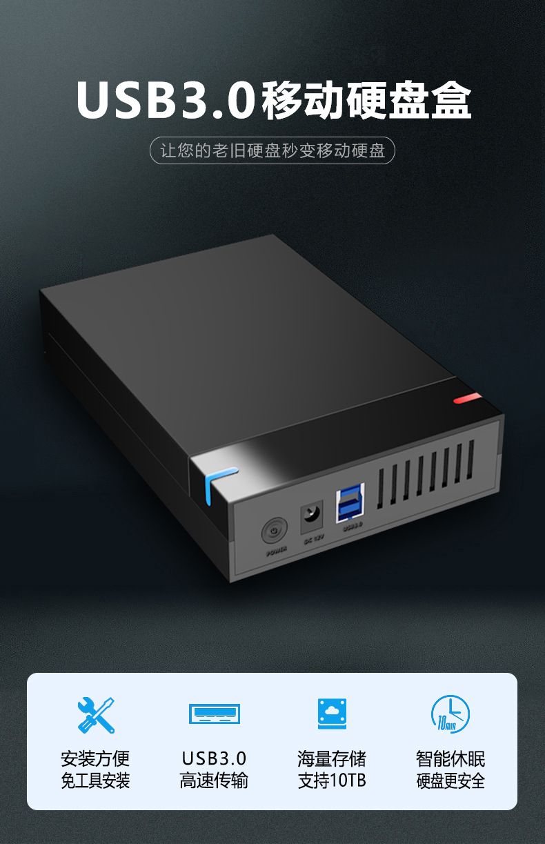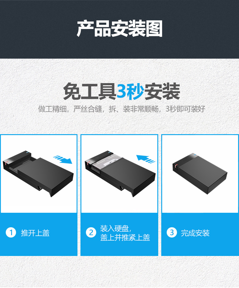 3.5寸串口台式机硬盘USB3.0高速传输免工具外置移动硬盘盒