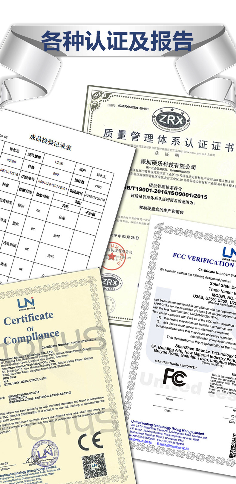 パッキングリスト ハードドライブボックス、データケーブル、電源、梱包箱