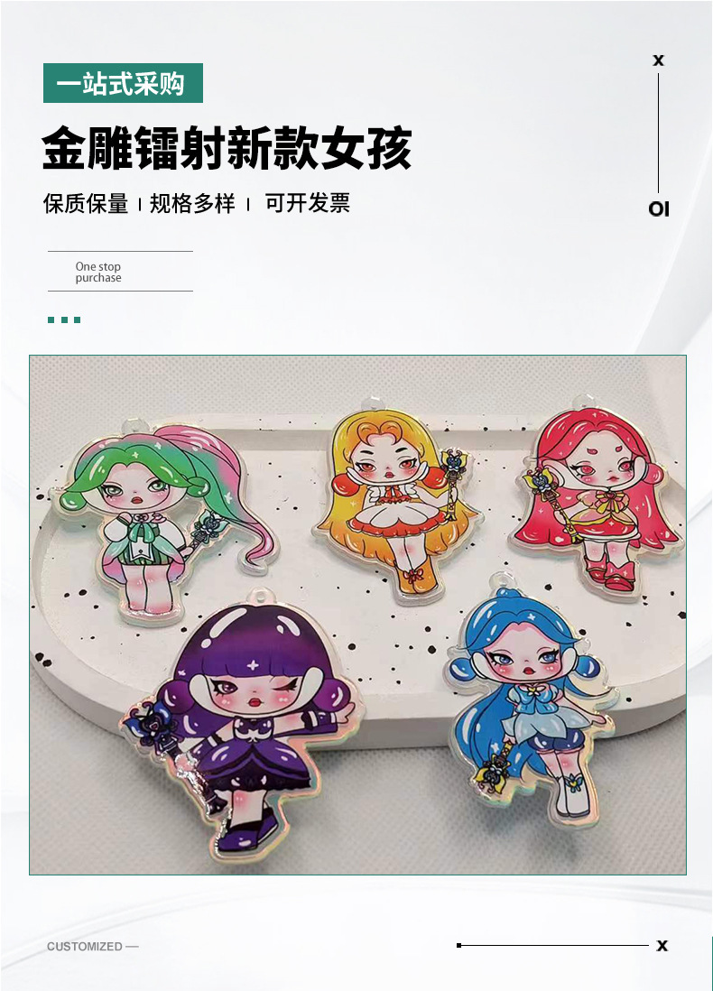 金の彫刻のレーザーの新型の女の子のアクリルの装飾品の部品の高い顔の値のdiyの漫画の人物のアクリルのパッチ