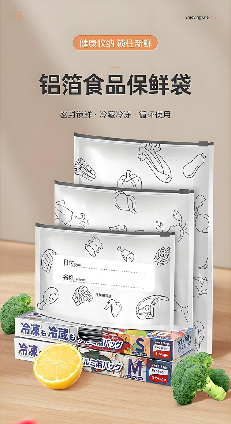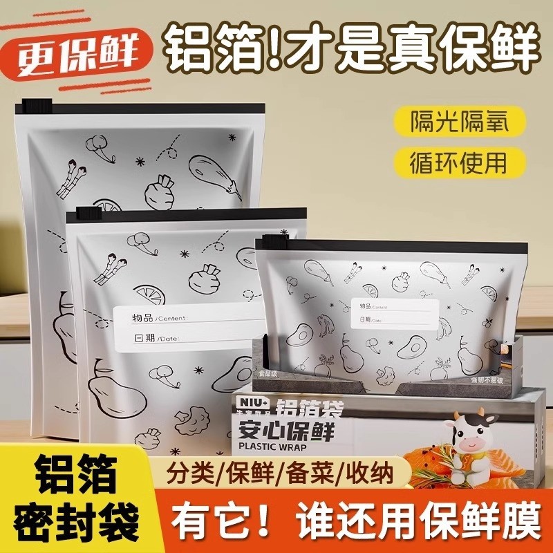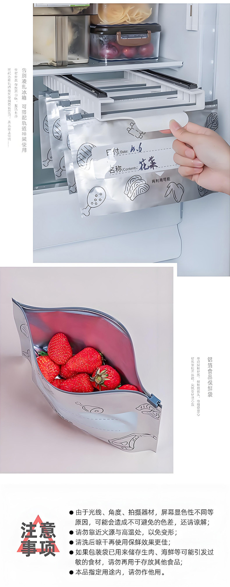 铝箔抗菌保鲜袋食品级铝钛箔冰箱食物密封自封袋冷冻冷藏保鲜袋