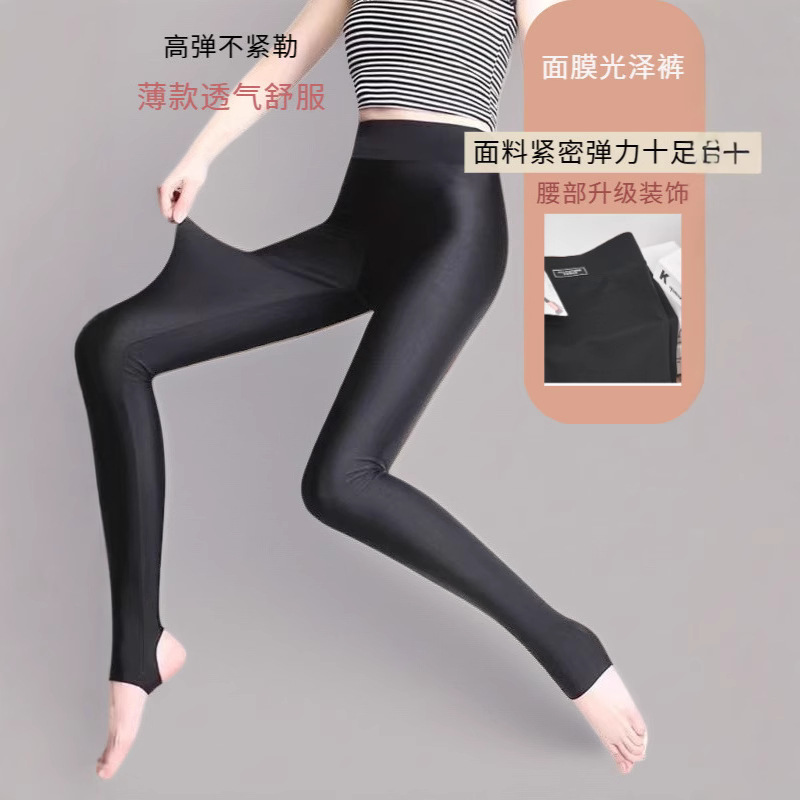 薄いタイプの足を踏む高腰の光沢のズボンの女性の大きいサイズのナイロンの超弾の底のズボンの女性の外は薄いタイプのマスクの底のズボンを着ます。