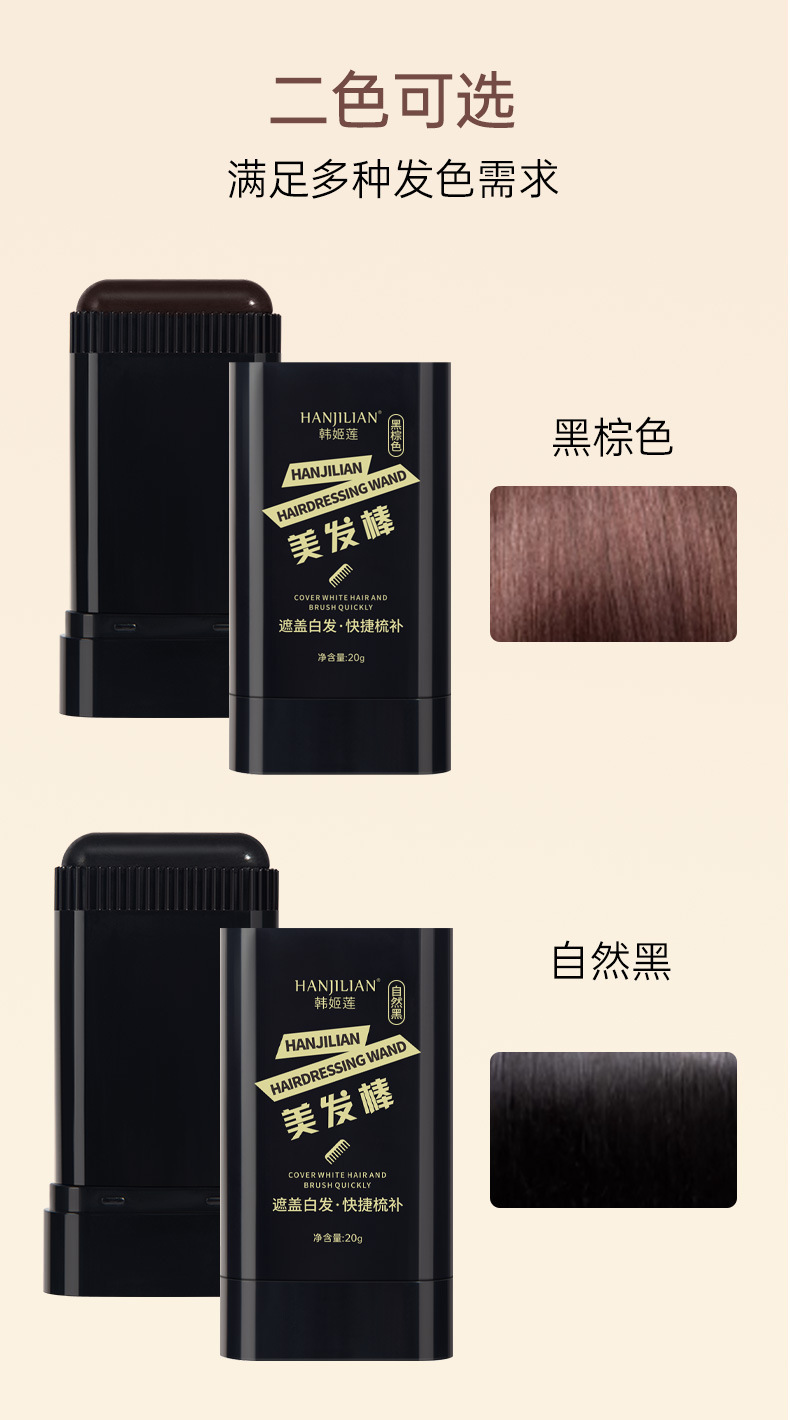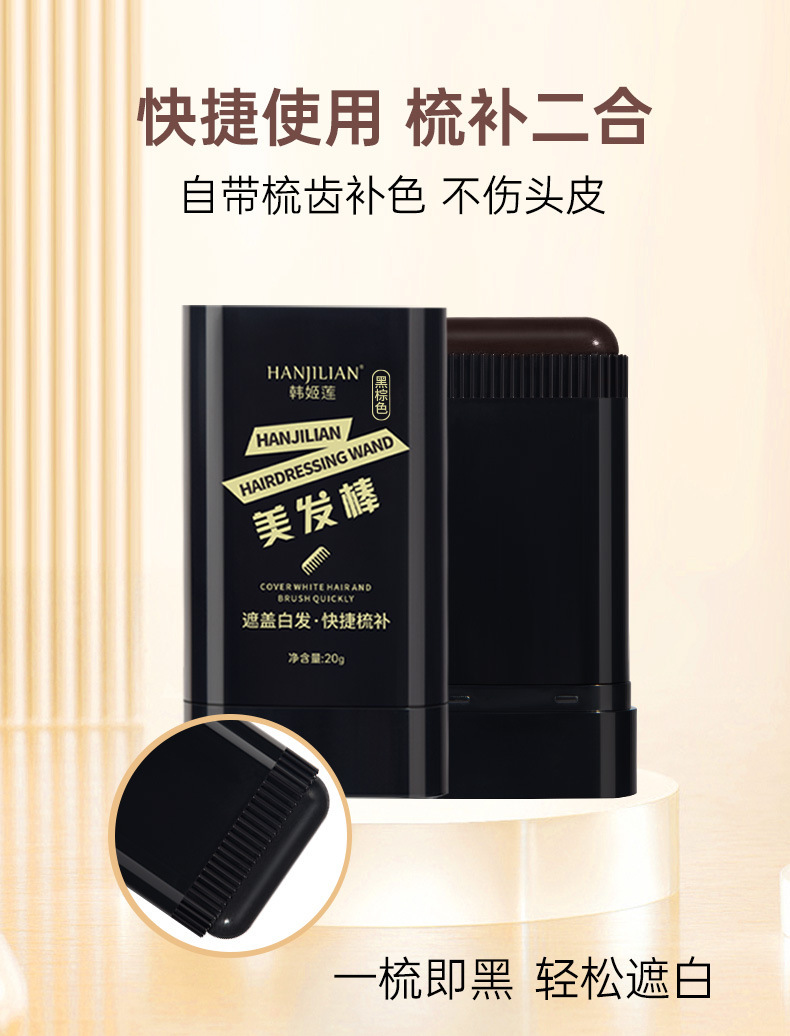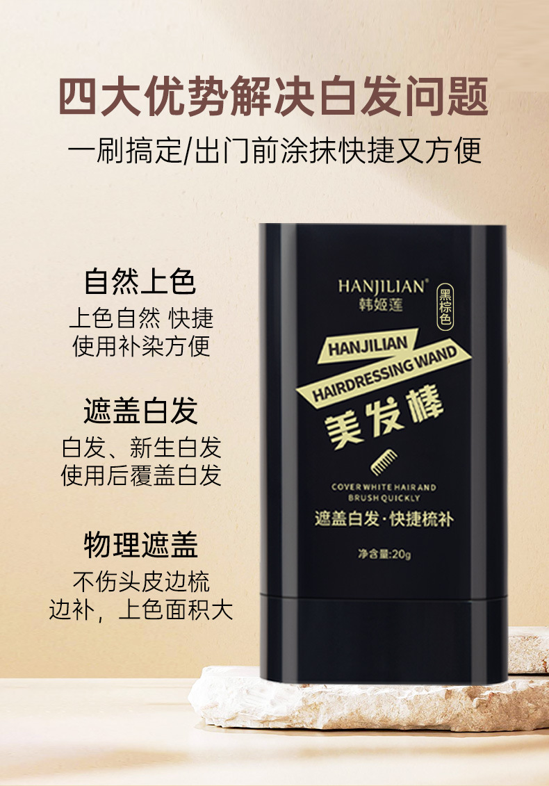 跨境美发棒遮盖白发一次性不掉色染发膏黑色便携遮盖神器美发棒