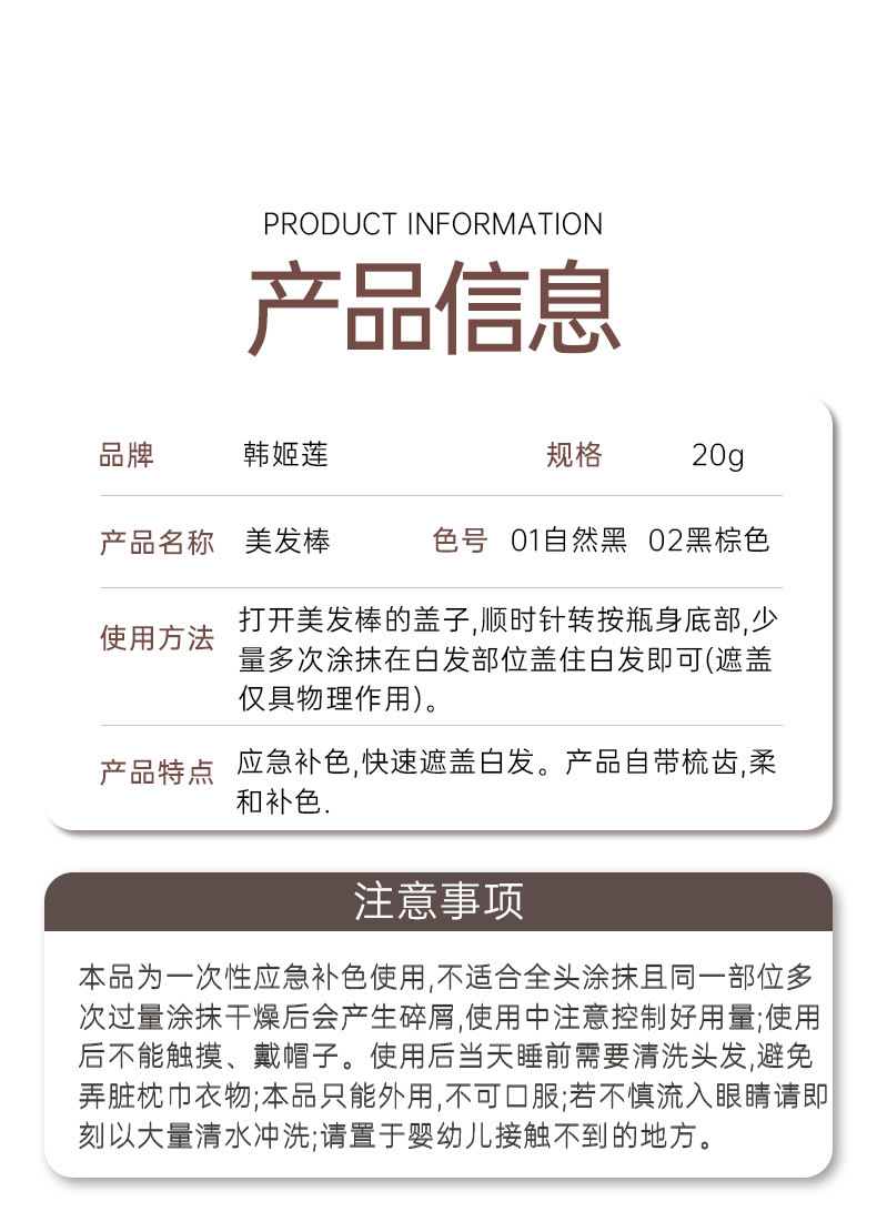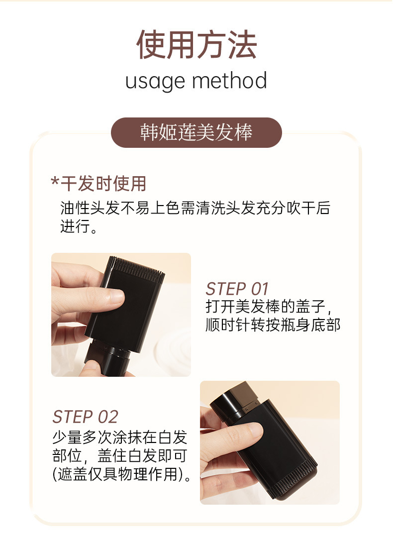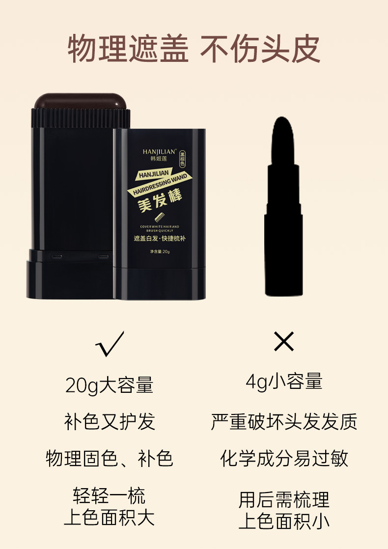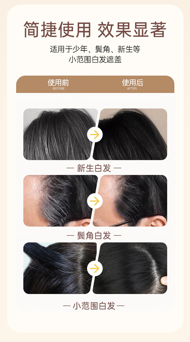 跨境美发棒遮盖白发一次性不掉色染发膏黑色便携遮盖神器美发棒