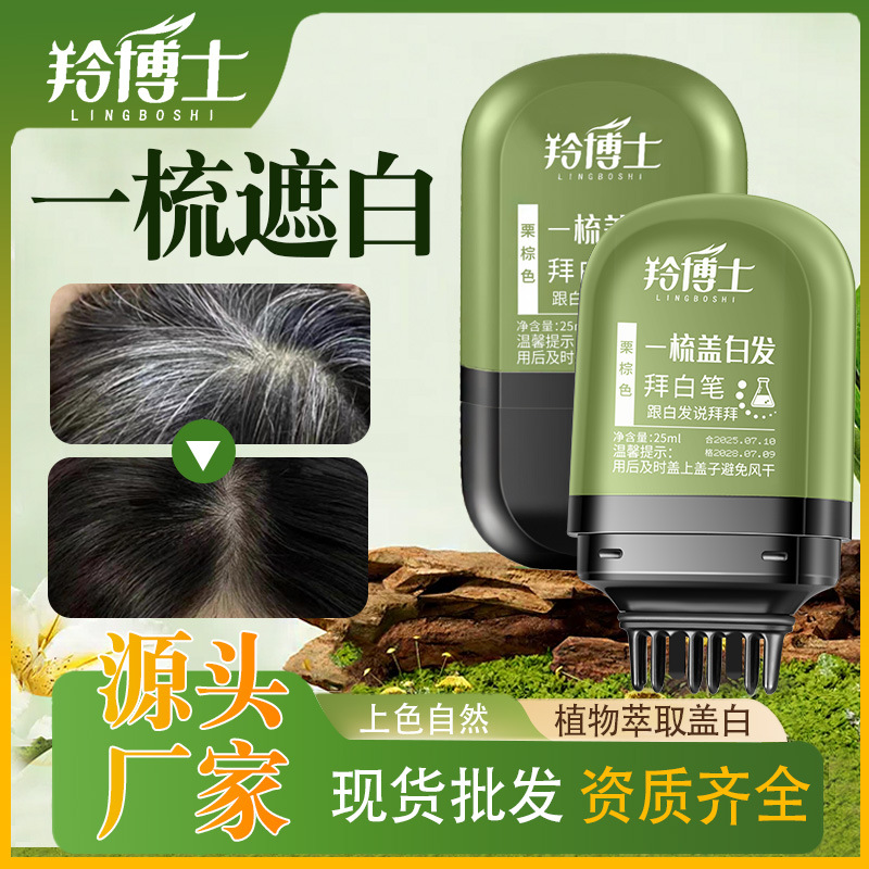 羚博士美发棒批发不易晕染脱色遮发笔持久盖白发神器自带齿梳厂家