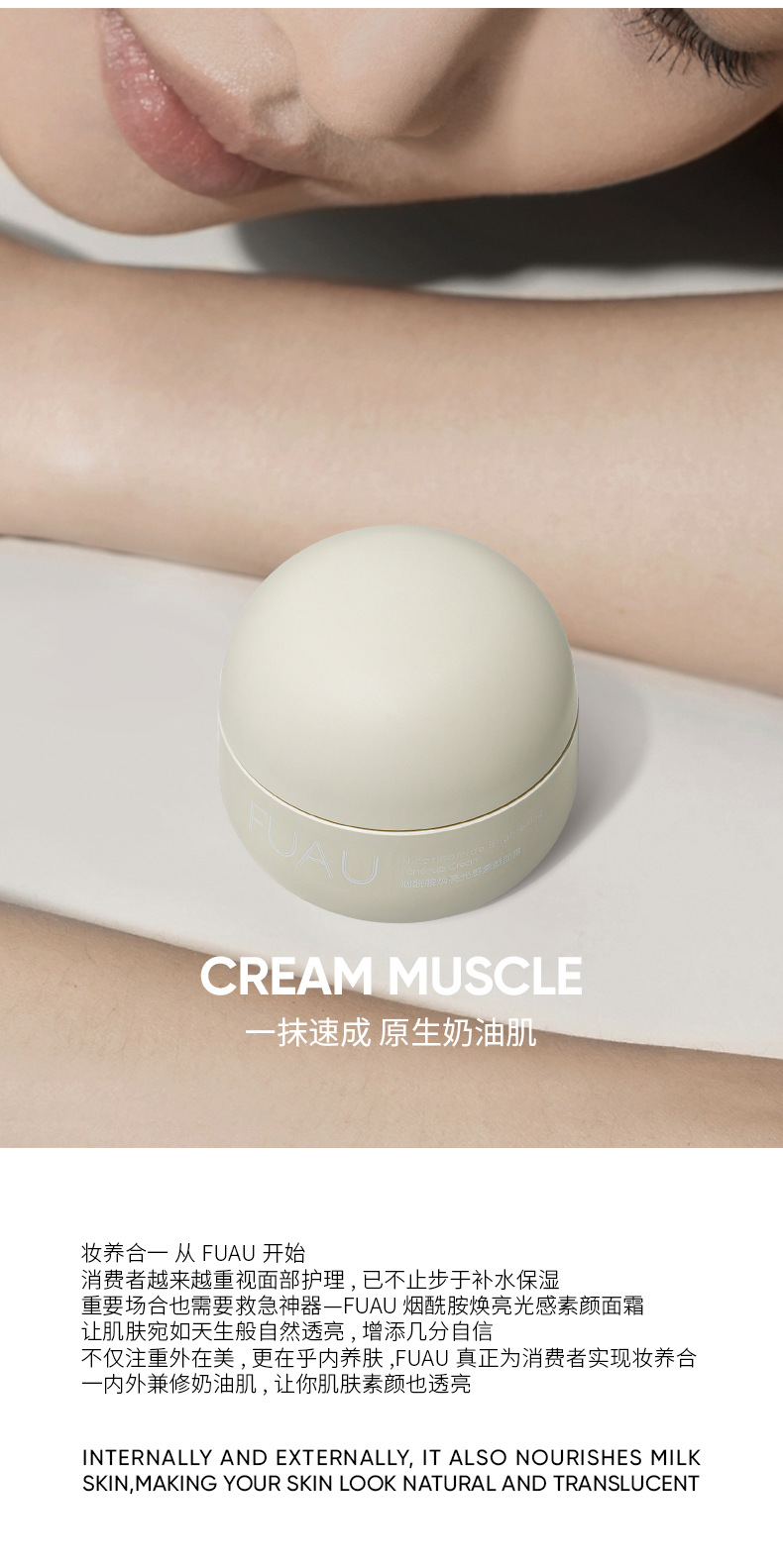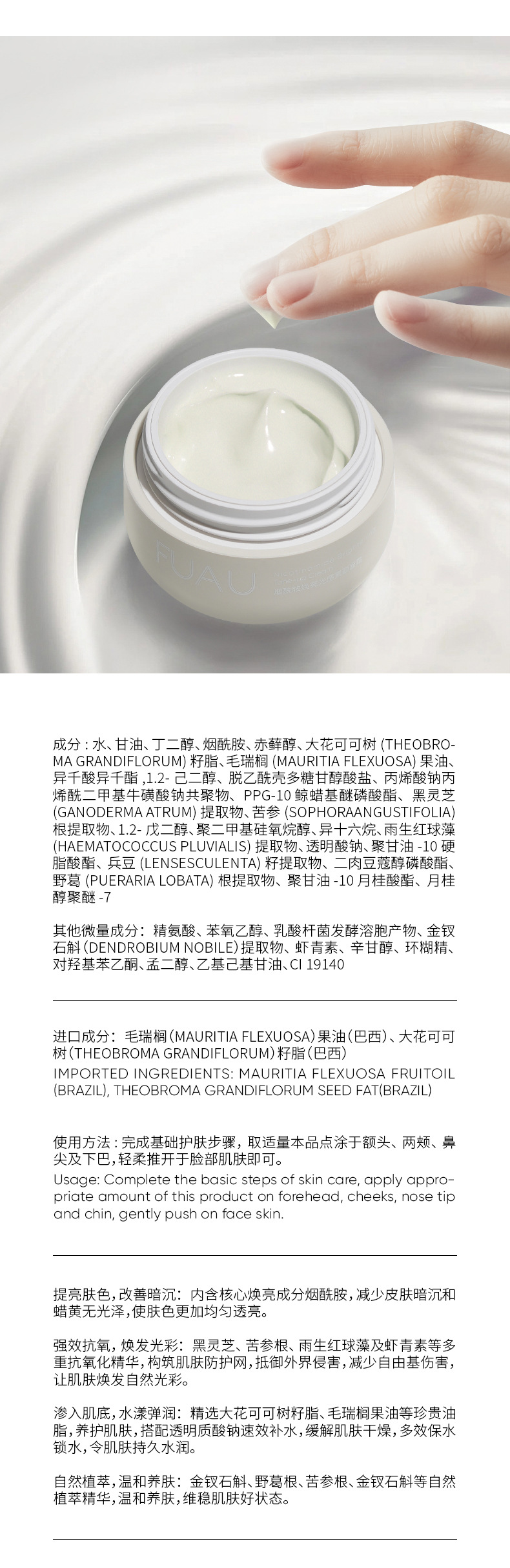 FUAUニコチン酸アミドの輝きは、白保湿ではなく、自然に肌の色を明るくします。
