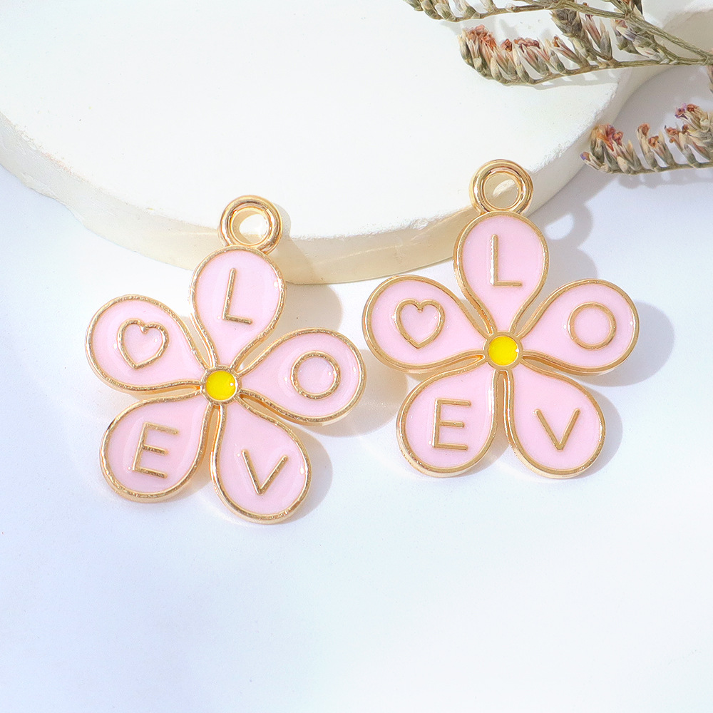 LOVE 五弁花 DIY ジュエリーアクセサリーシングルペンダント INS スタイルペンダント植物花シリーズハンドロープ 4 色小さなペンダント