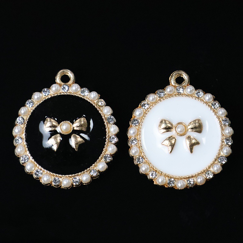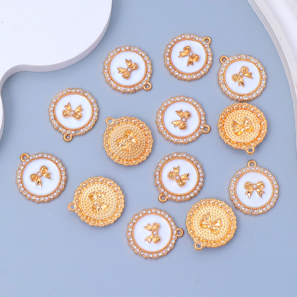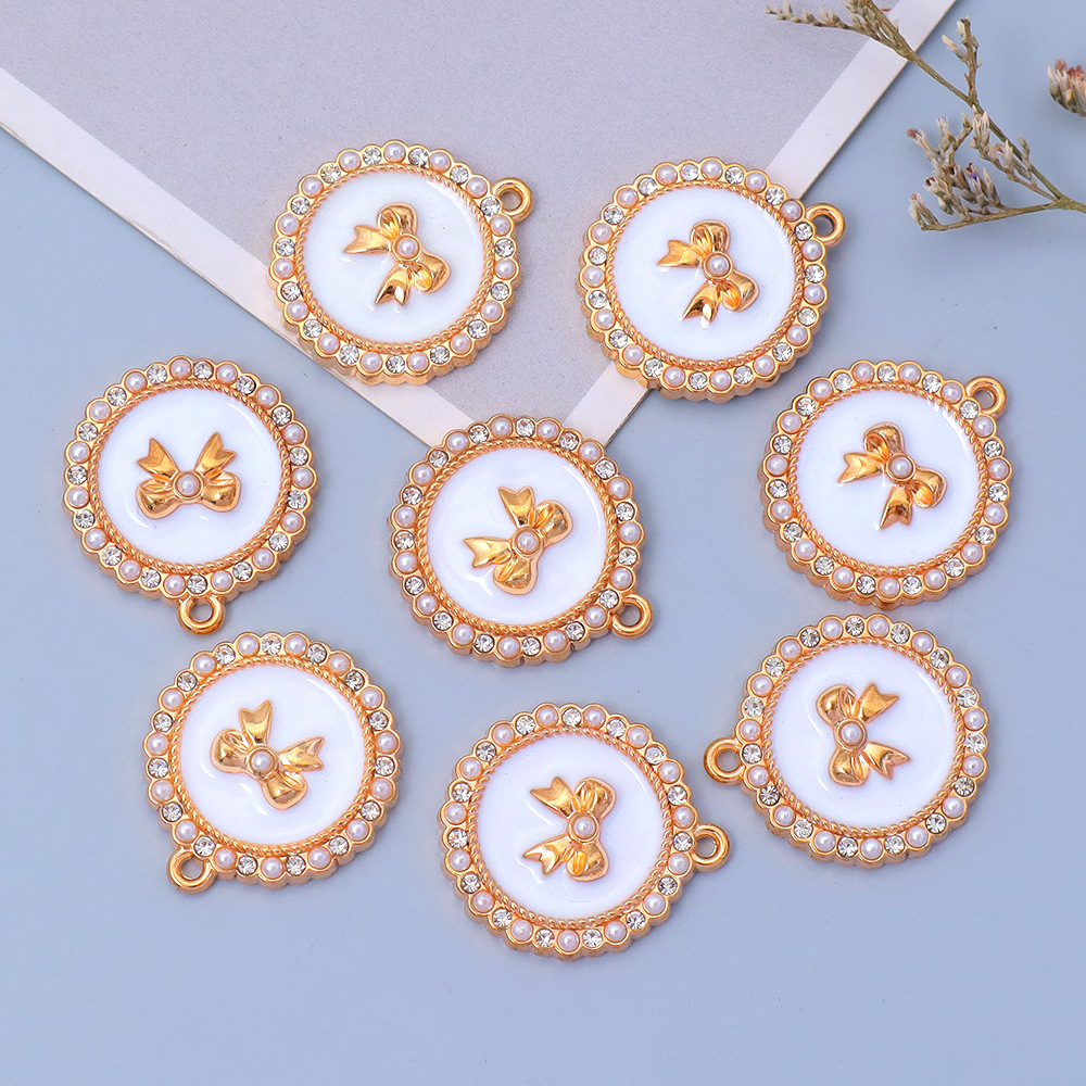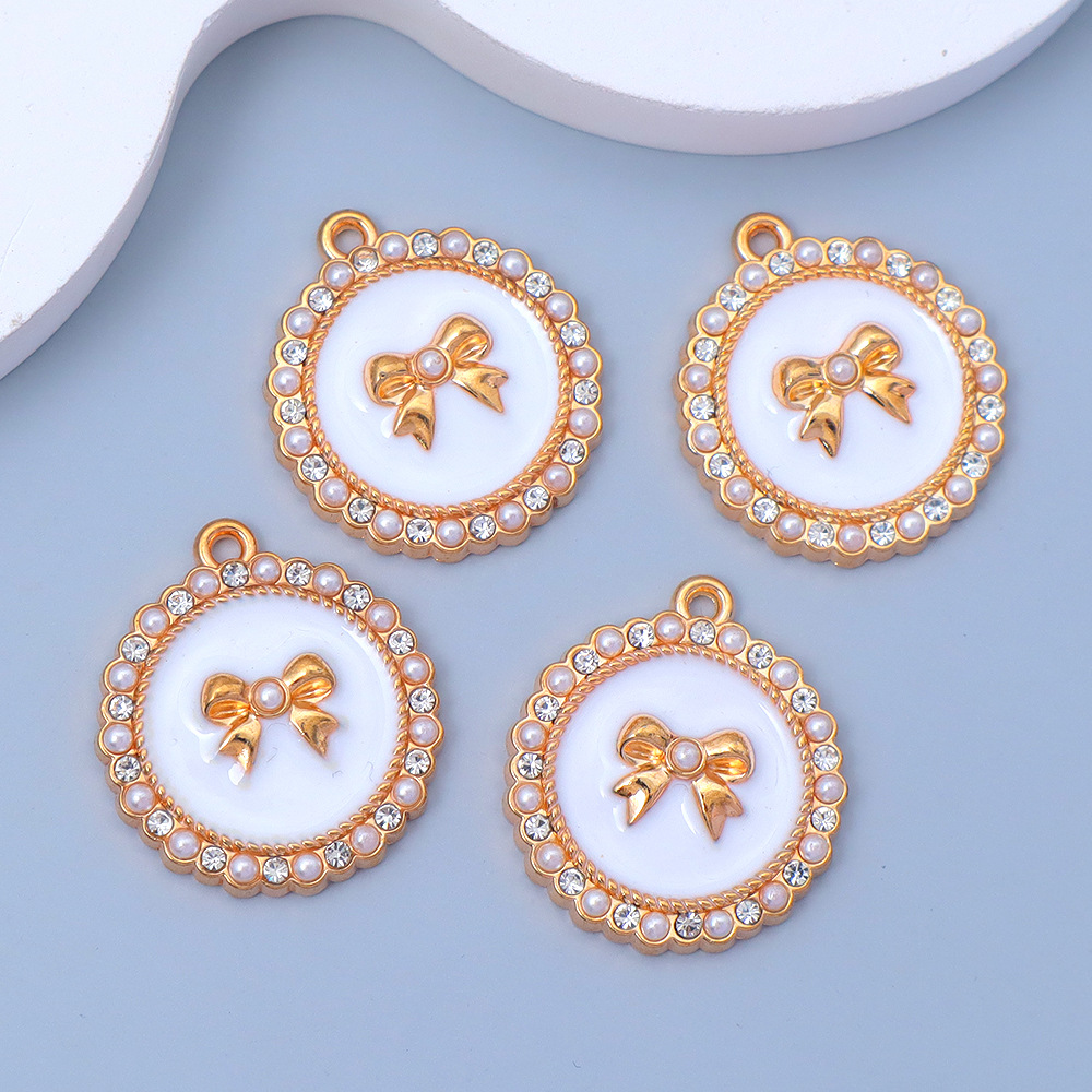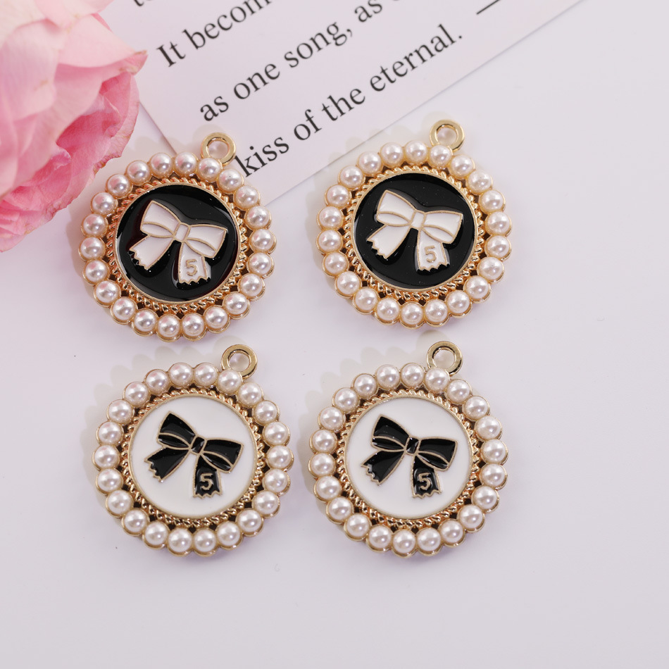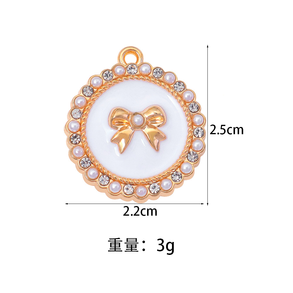 韓国版新型ヘアアクセサリーDIY合金アクセサリー真珠蝶結び円形ペンダントDIY滴油合金ペンダント材料