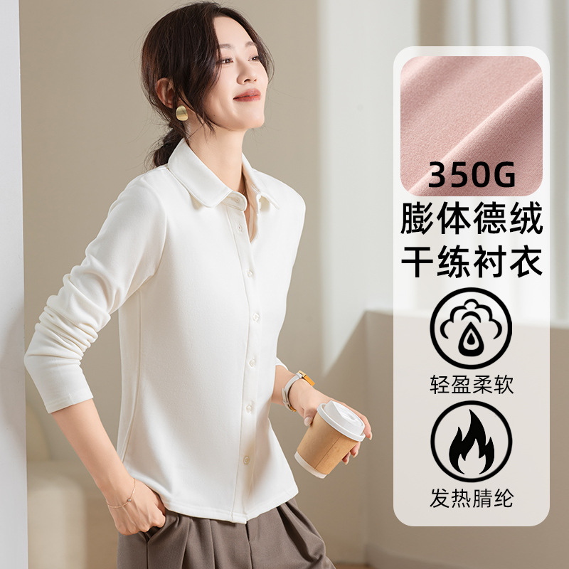 代发女款膨体德绒保暖衬衫350克加绒加厚衬衣秋冬宽显瘦内搭上衣