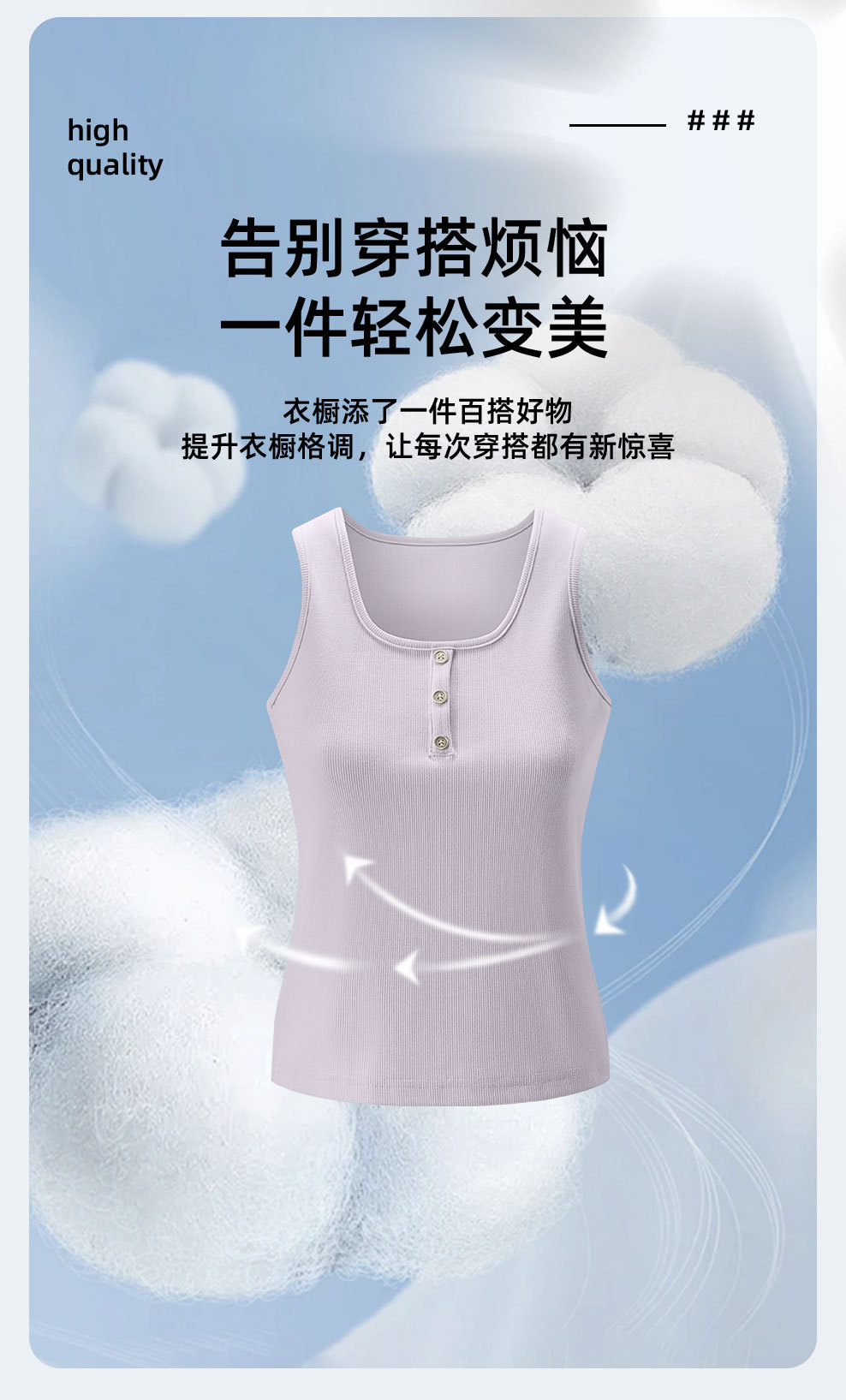 冬款加贴片羊毛填充固定杯背心加厚内置罩杯保暖内衣羊毛背心马甲