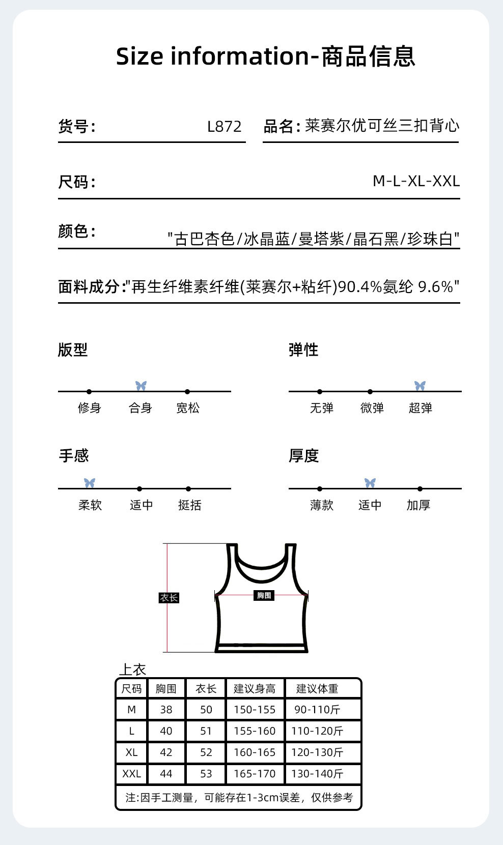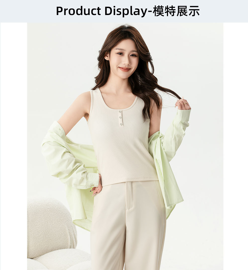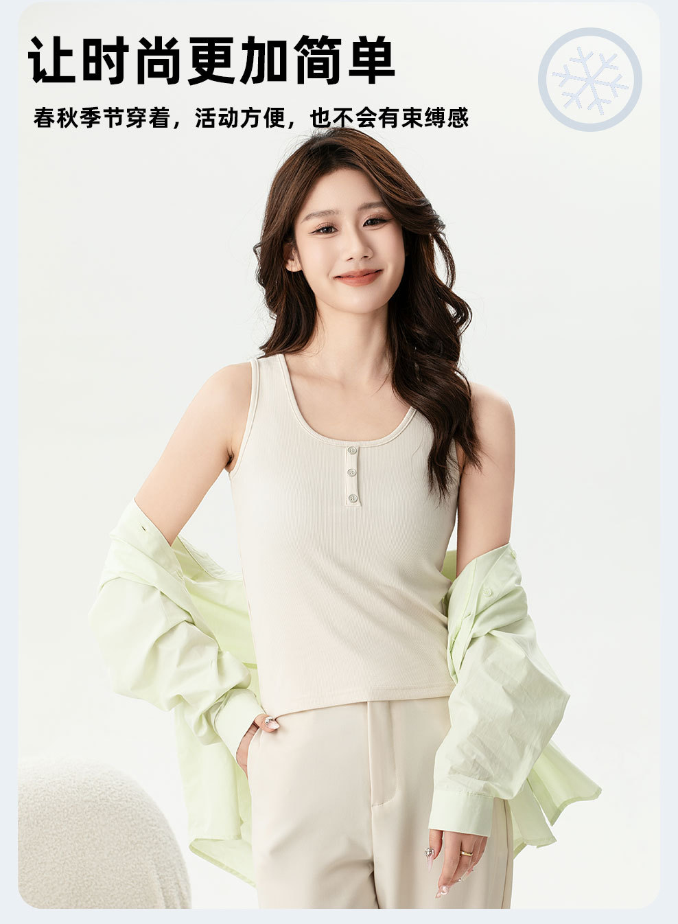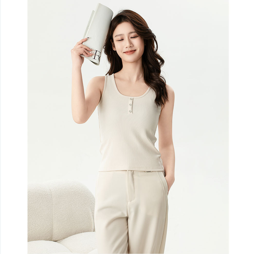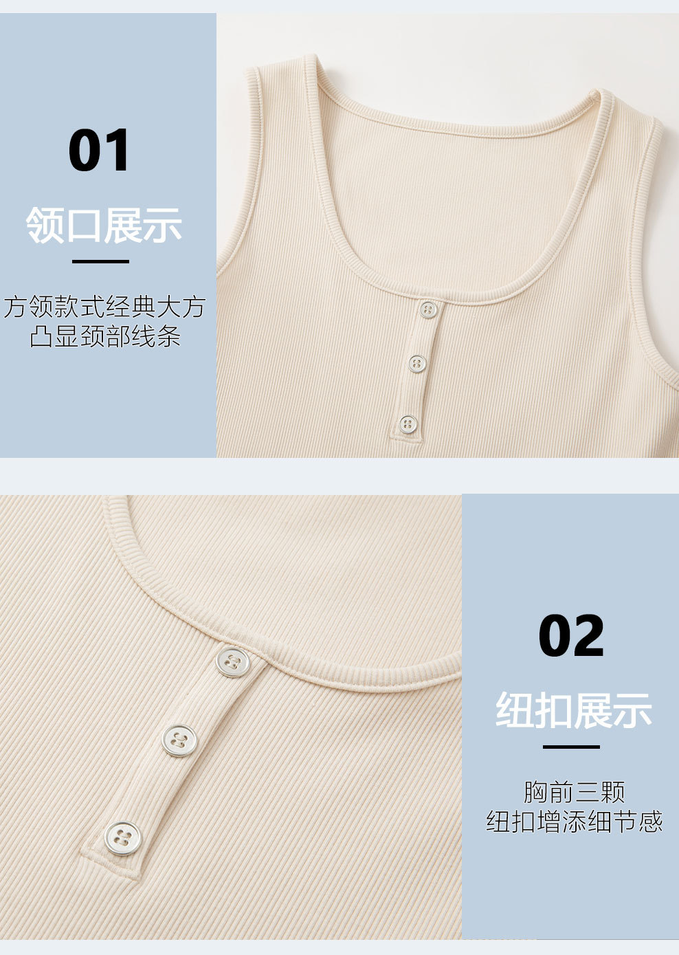 ライゼル涼感リブ三ボタンデザインノースリーブベスト夏着通気吸汗自在性L872