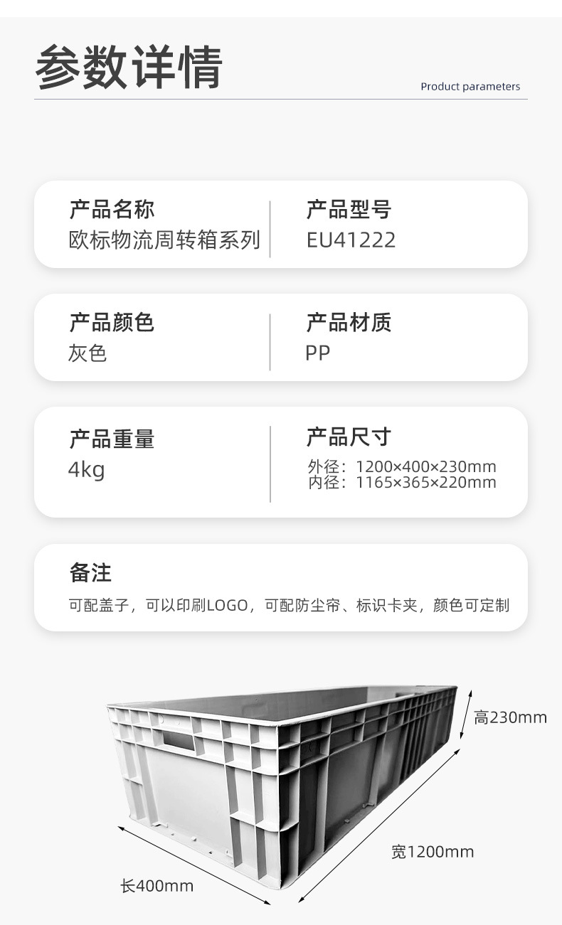 EU箱欧標物流箱工業汽車配専用増厚防塵カーテン付き防水軽量蓋付き積み重ねかご中継