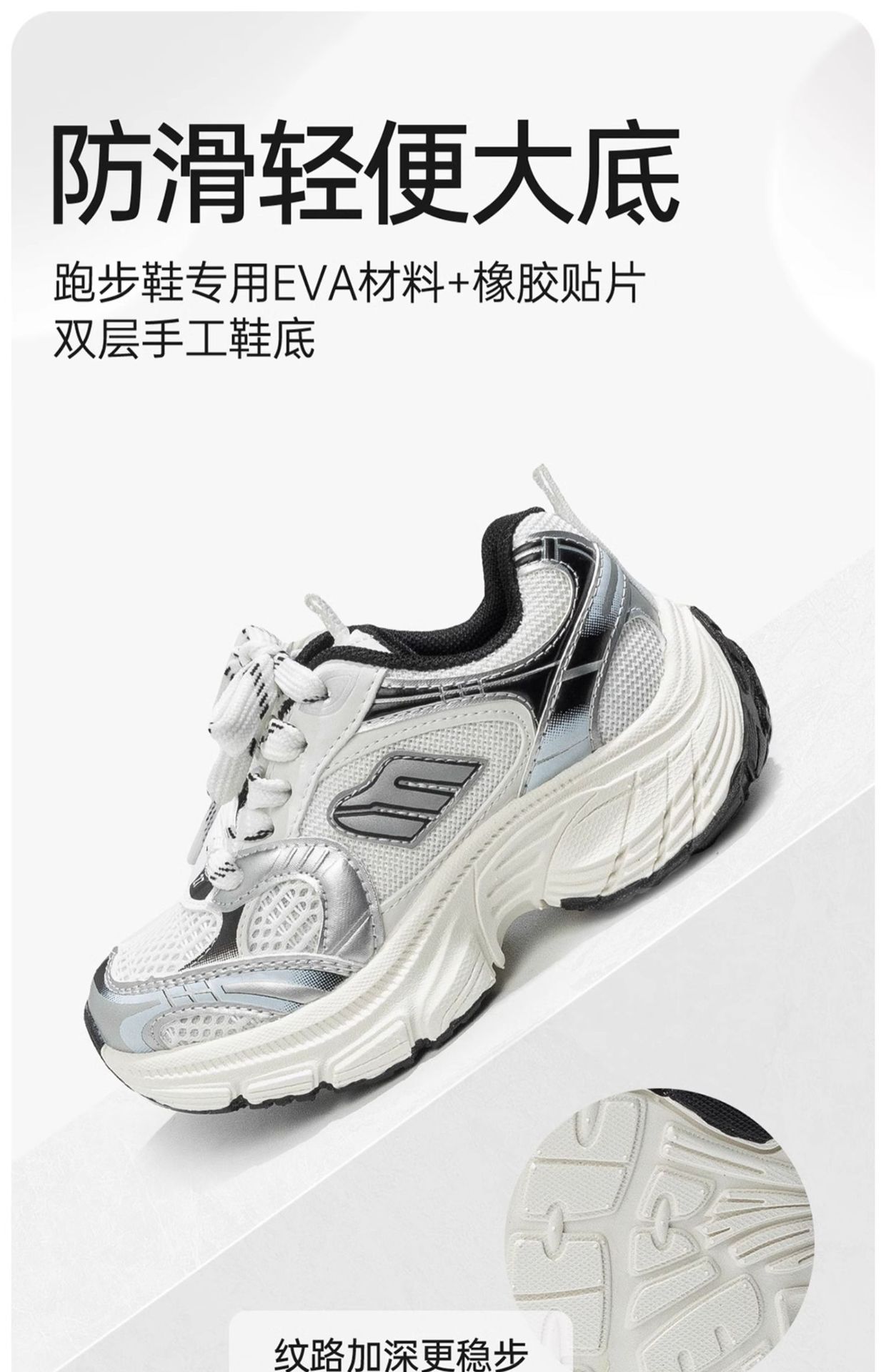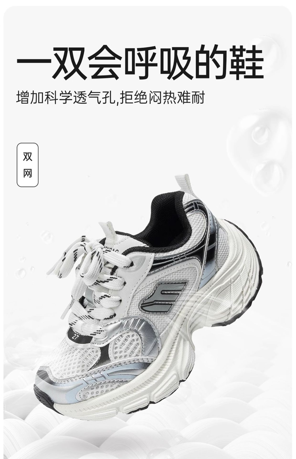 女童厚底老爹鞋防滑网面透气运动鞋儿童跑步鞋2025春中大童系带潮