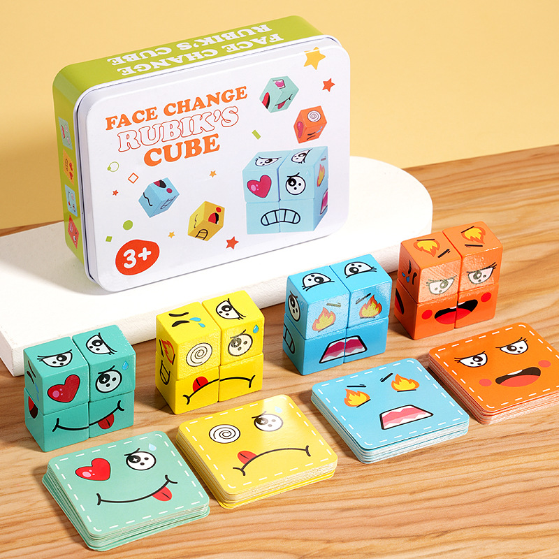 表情变脸魔方积木铁盒儿童对战款玩具 亲子桌游木制挑战关卡玩具