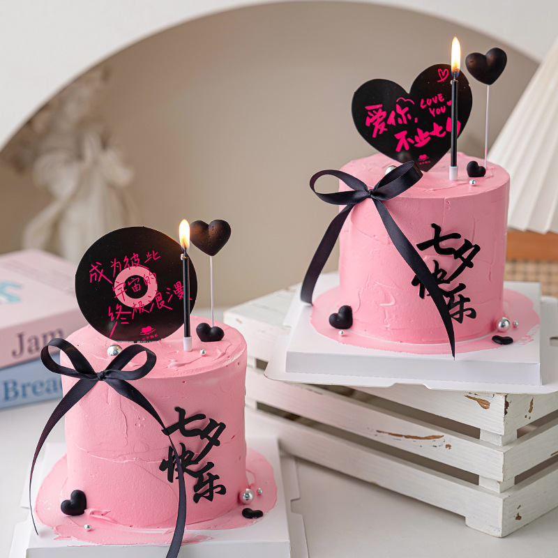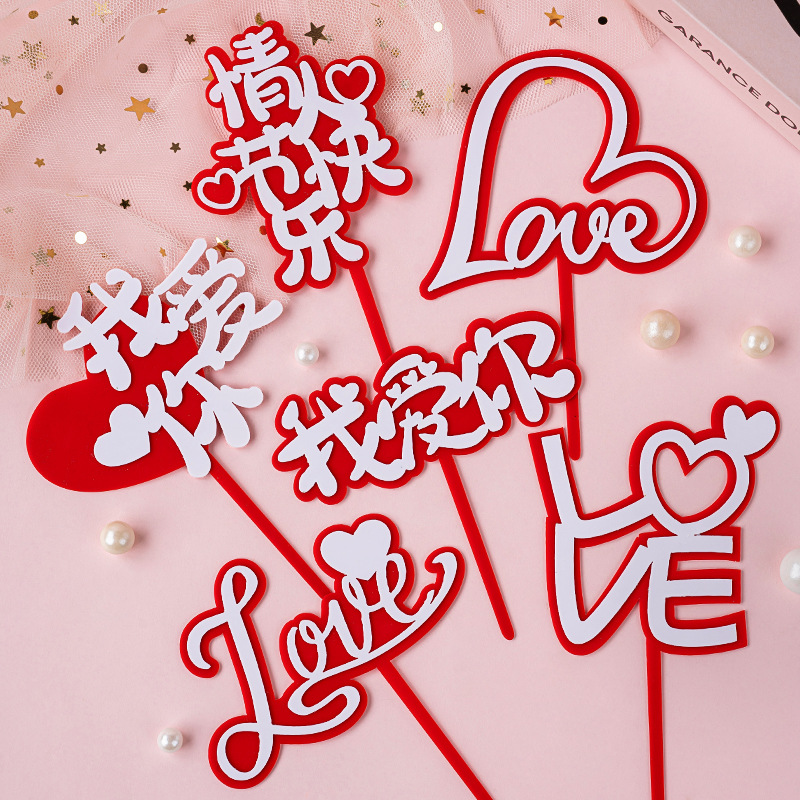 网红七夕情人节蛋糕装饰摆件情侣节日爱心love亚克力烘焙插件插牌