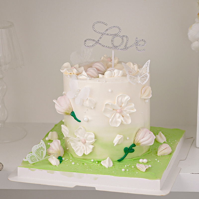 七夕情人节唯美幻彩蝴蝶蛋糕装饰摆件毛毡水钻love情侣表白插件