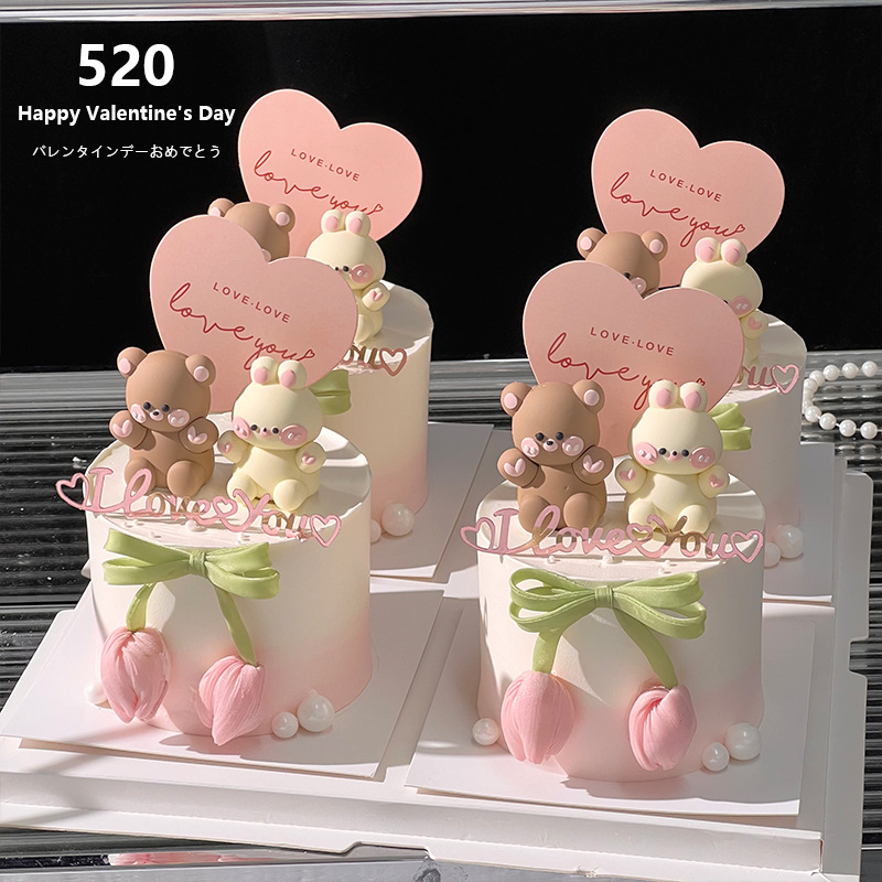520バレンタインケーキ饰りベアウサギ置物爱爱爱爱カードチューリップつぼみリボンプラグイン