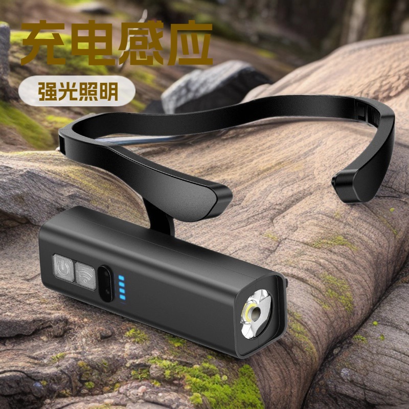 跨境户外挂耳式充电长续航夜钓登山多功能强光照明挥手感应头灯