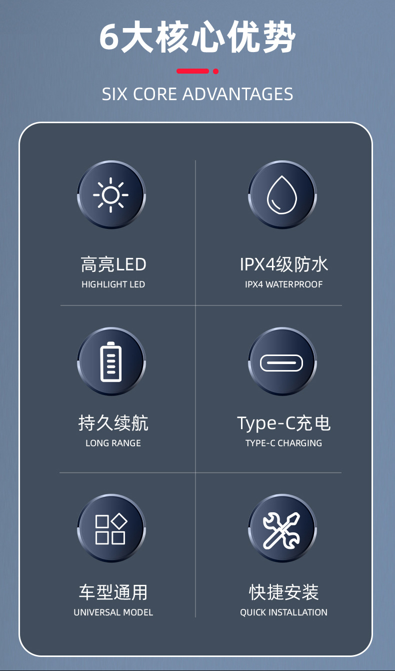跨境户外强光工作露营灯便携手电筒机甲风汽车维修灯可充电可调光
