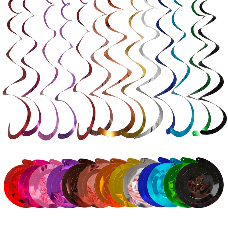 节日装饰螺旋拉花挂饰彩色布置生日派对场景悬挂旋涡螺旋PET吊饰