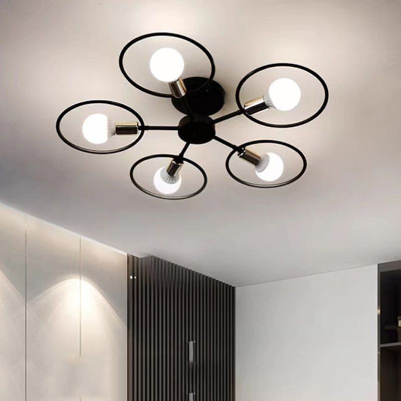 国境を越えた北欧の鉄芸の天井灯のアメリカ式の黒色の円形の創意の個性の暖かい主な寝室のレストランの客間の照明