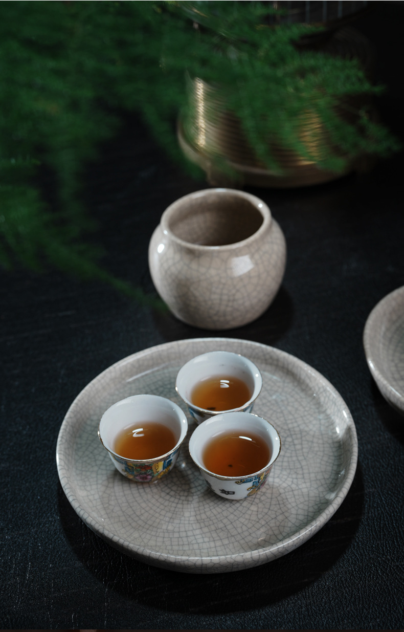 陶磁器の乾燥した泡の台の工夫の茶道の3つのセットの茶器の部品の杯はお茶を敷いて洗って水のお茶のかすのかめの壺を建てて小さいお茶の皿を受けます。
