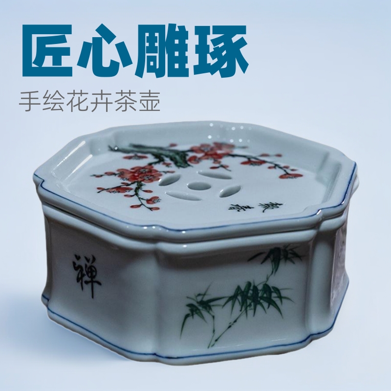 潮州枫溪功夫茶器 白磁 茶盤付き 六角形 潮汕 水貯蔵磁器茶船 壺置 国潮風 手作り