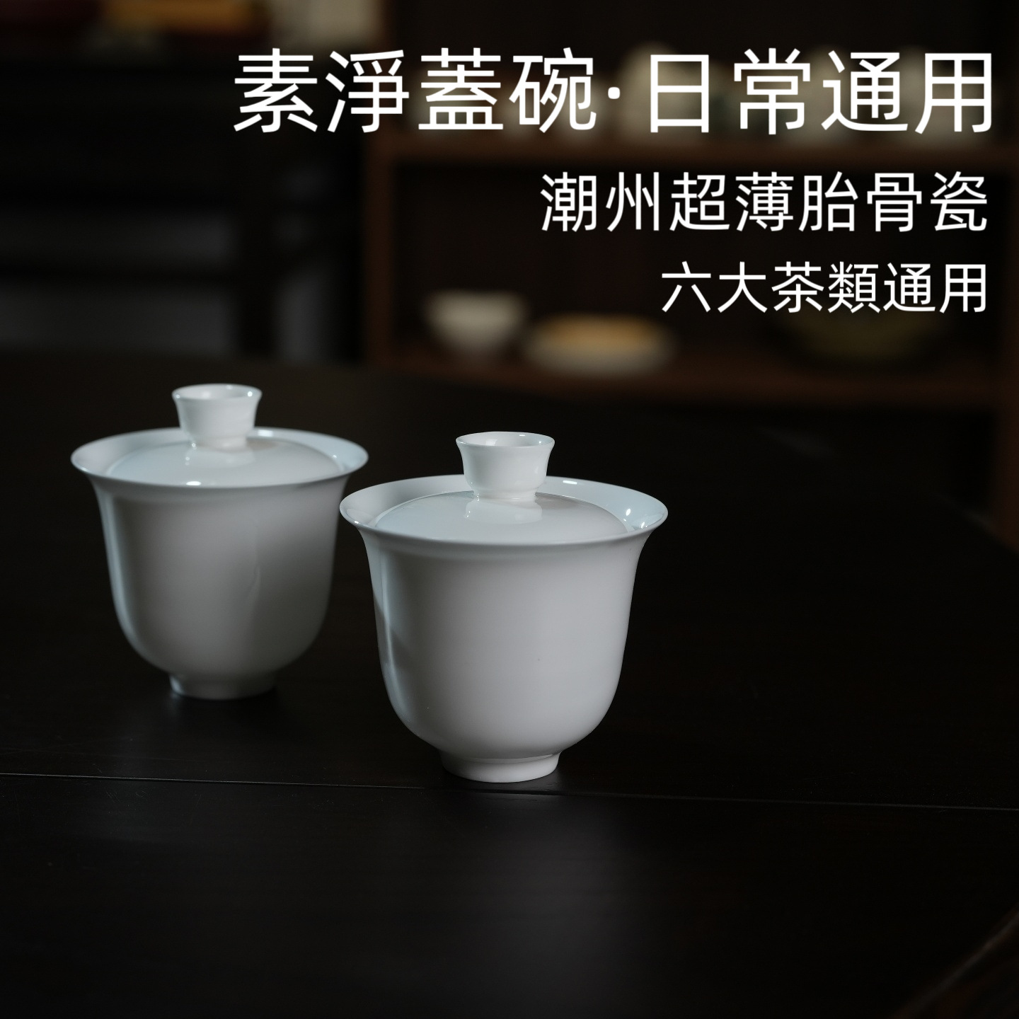 ボーンチャイナ蓋ボウル薄胎潮州カンフー茶セット白磁茶ボウルティーカップギフトハイエンド三才蓋ボウル