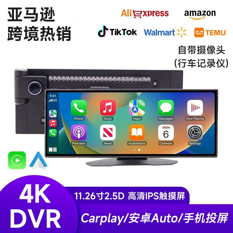 跨境Carplay 行车记录仪高清4K前后双录WiFi导航仪中控台倒车影像