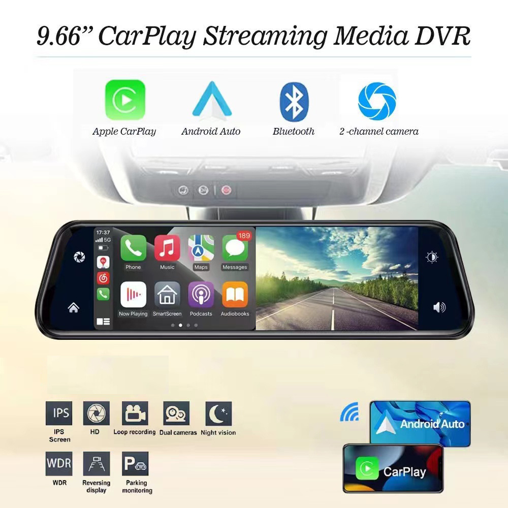 9.66寸无线carplay行车记录仪FM手机互联流媒体投屏前后双镜头4K